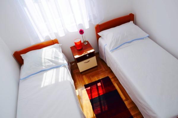 Casa de familie cu totul nou apartament mobilat este situat într-Dicle, o zonă rezidențială din Zadar în imediata apropiere a hotelului și facilitățile Falkensteiner Borik. Apartamentele sunt situate lângă mare și plajă. Parcare în fața clădirii este securizat. Utilizarea rațională a aer condiționat și internet sunt incluse în preț. Apartamentele sunt situate 100m de la cel mai apropiat restaurant si la 300 m de bar de cafea, produse de panificație și supermarket. Toate apartamentele au două dormitoare cu băi spațioase și balcoane / terase, aer condiționat, televizoare cu LED-uri cu capacitatea de a reda conținut filskih din memorie USB, WiFi. Proprietarul, de asemenea, trăiește acolo și este disponibil 24/7.