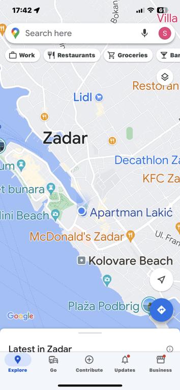 Odată cu sosirea în Zadar am avut ajutor sa parchezi masina pentru parcare gratuită. Apartamentul ne-a plăcut pentru că a fost mobilate cu gust. Ne-a impresionat cu punctul său de vedere de la balcon pe care placerea de a sta în condiții de siguranță și să bea cafea. Din moment ce am fost în luna aprilie pentru ceva ce erau reci. Bucataria are tot chiar lucrurile care aveți nevoie de ele. Totul este îngrijite și curate, iar sala a fost satisfăcătoare. Centrul comercial este aproape. Și toate celelalte destinații pentru vizitarea obiectivelor turistice, astfel obiective turistice nu sunt departe și le puteți vizita pe jos.