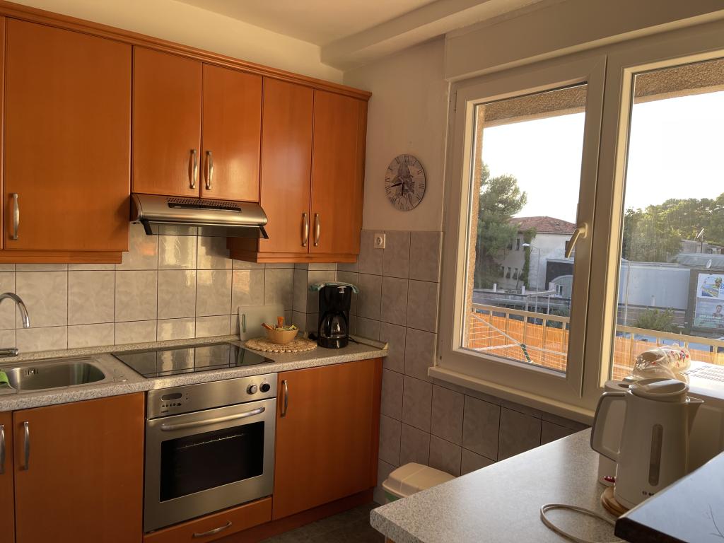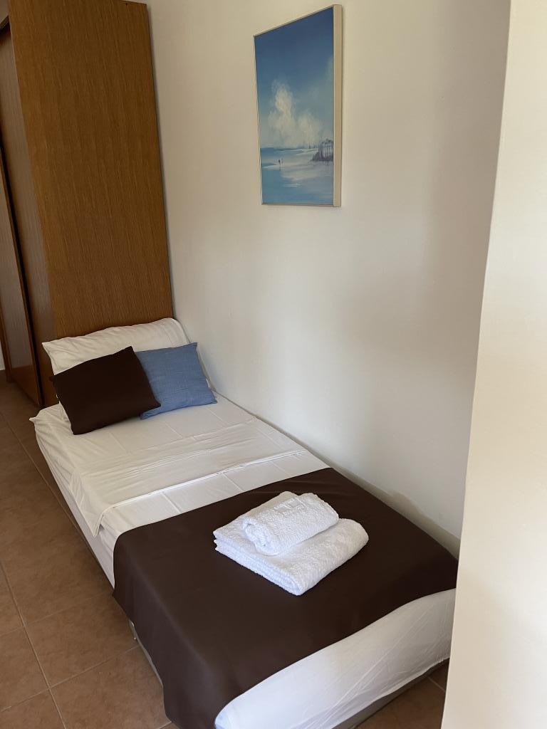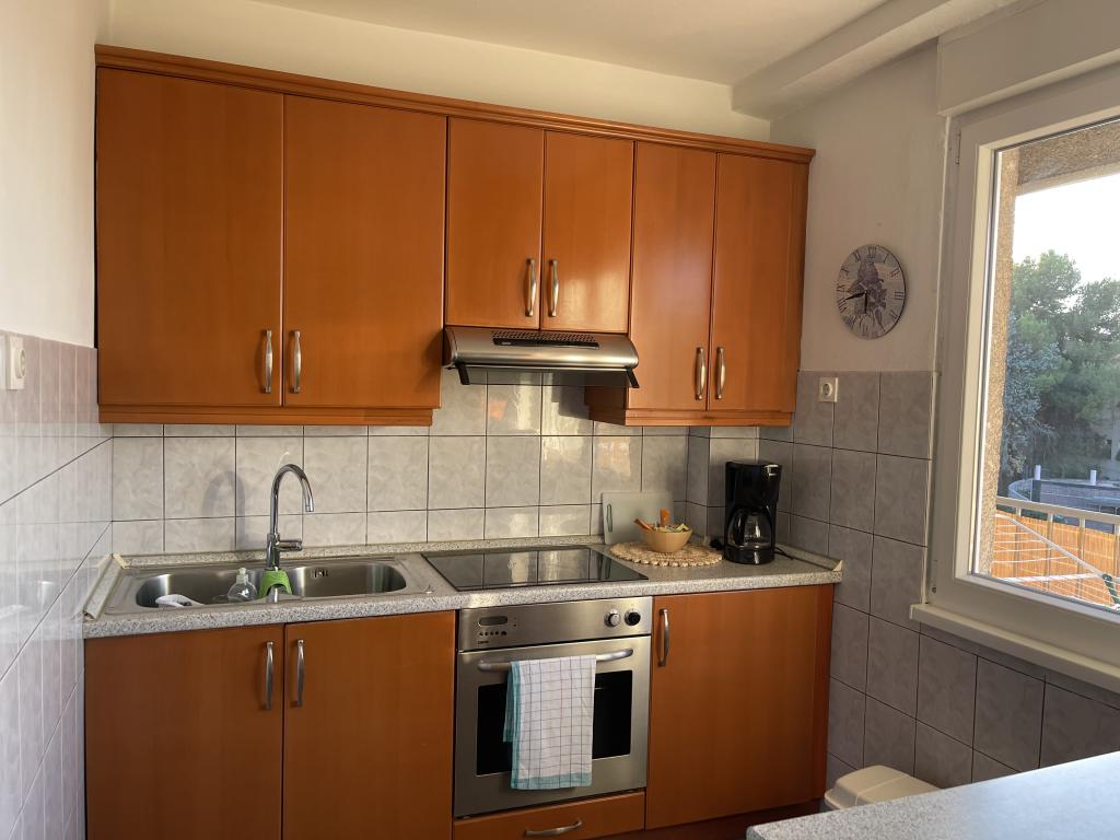 Apartamentul este situat in apropierea centrului orasului si a plajei, vedere la mare, etajul 3. Suprafata unitatii de cazare este de 60m2, este formata din 2 dormitoare, unul cu 2 paturi separate / 90X200/, iar celalalt cu pat dublu / 160X200/. În living există o canapea pentru a cincea persoană. Bucătărie utilată: cuptor cu microunde, aparat de cafea, ceainic, cuptor. Baia are dus si masina de spalat, livingul si un dormitor au acces la terasa.Pretul de inchiriere include lenjerie de pat, prosoape, WI-FI, taxa turistica