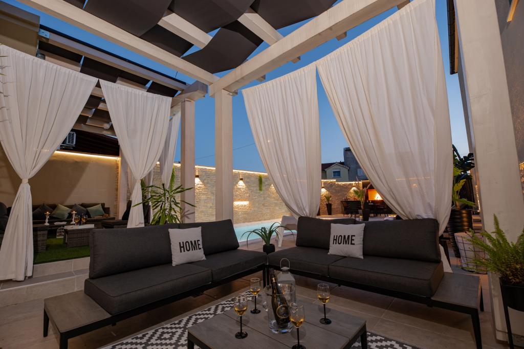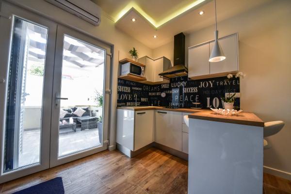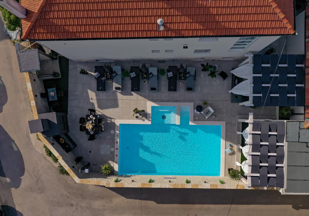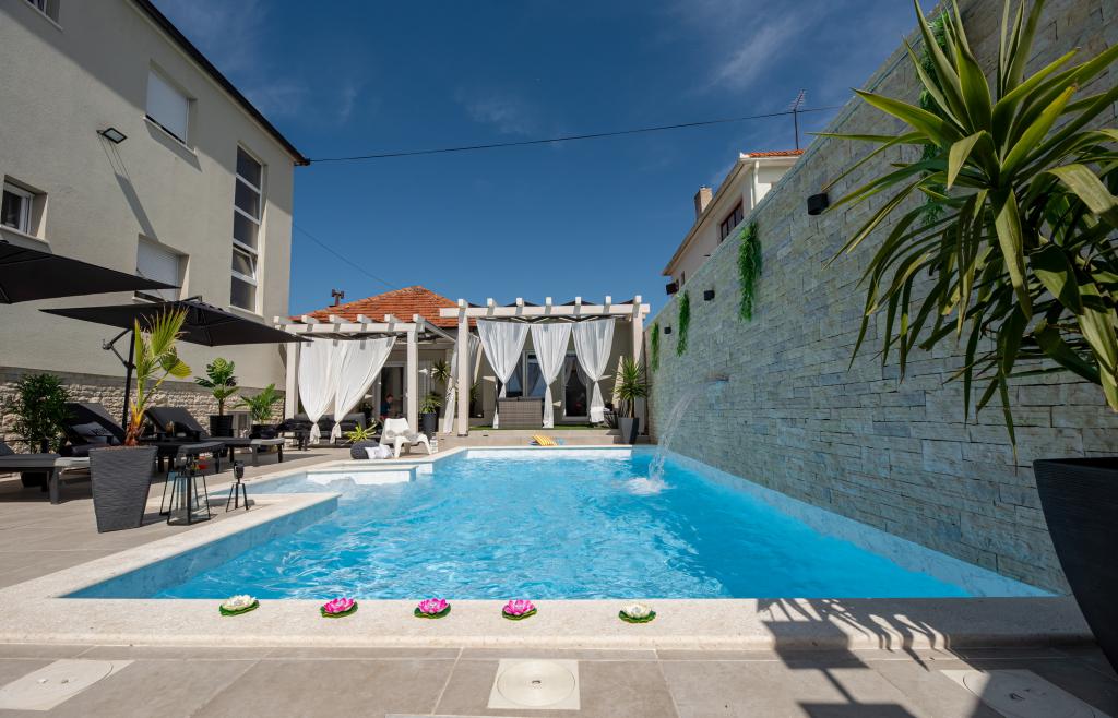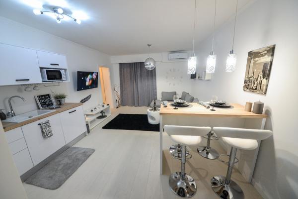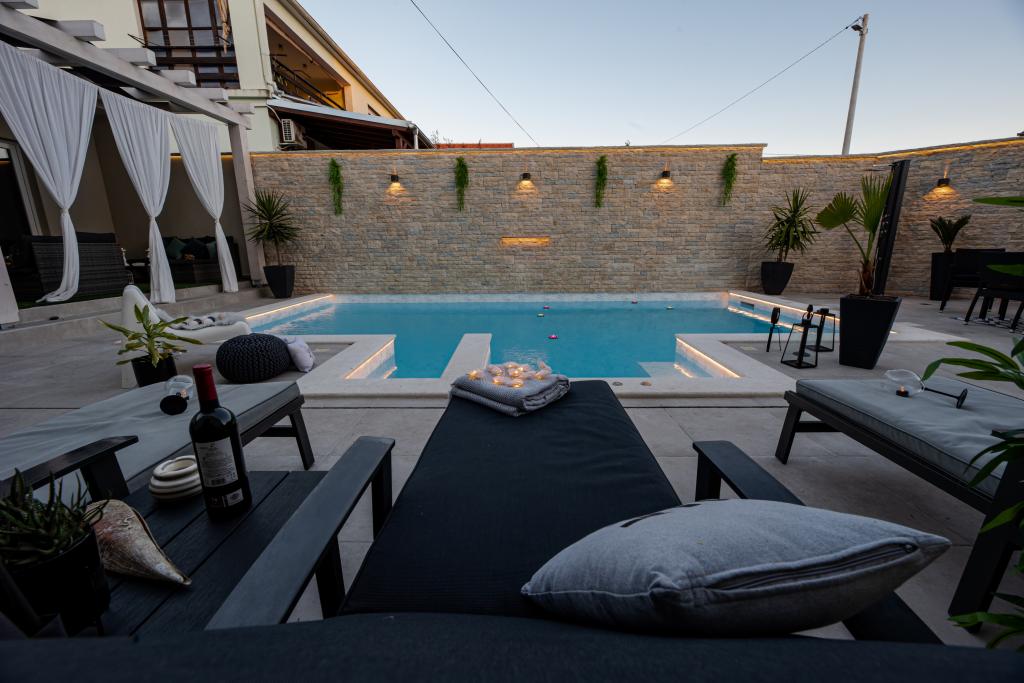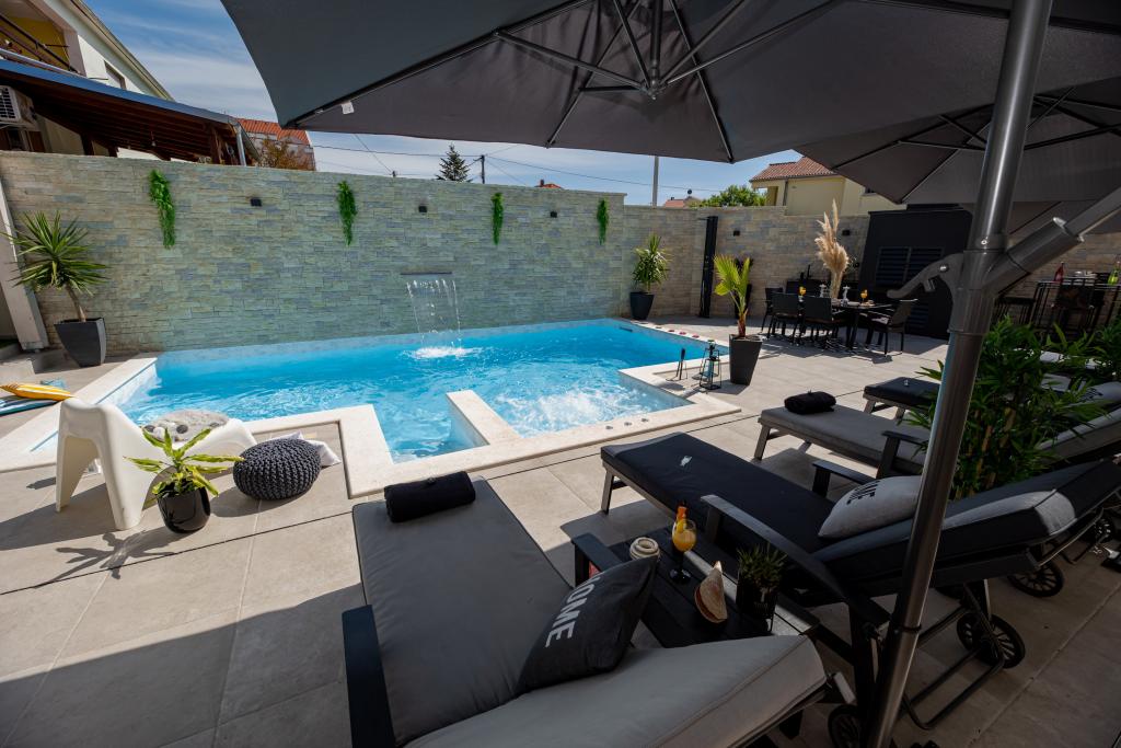 Apartamente recent moderne, dotate cu tot (lenjerie de pat, prosoape, smart tv, wi-fi, aer condiționat, vase, prim ajutor, literalmente la ac și fir! Măști și dezinfectare la intrare!) Ca parte a terasei apartamentului (care este combinat cu alte apartamente se poate conecta pentru un grup mare) intrare separată, 6 locuri de parcare. Peste drum 2 brutării, magazin alimentar Bakmaz, la doar 3 minute de mers pe jos de magazinul de reduceri Tommy, la 5 minute de mers pe jos de Kaufland, Interspar, la 5 minute de centrul sportiv Višnjik (tot felul de terenuri de sport, pistă de jogging, sală de joacă pentru copii în aer liber), în cartier de coafură, salon de înfrumusețare, salon de masaj, pizza cu taxi, centru comercial Galerie oraș .... 10-15 minute pe jos sau 5 minute cu mașina până la cea mai apropiată plajă Kolovare, piscină .... 15 minute pe jos sau 5 minute cu cu mașina până în centrul orașului (peninsula) ... 15 minute cu mașina toate plajele mari, plaja cu nisip - kite surfing, Ljubac, Zaton, Pinija, Petrcane, Sukosan, Nin .... De asemenea, organizăm transport la și de la aeroport și excursii cu barca cu motor la insule, scufundări sau pur și simplu vezi delfini ... Din acest an piscină încălzită, grătar !!