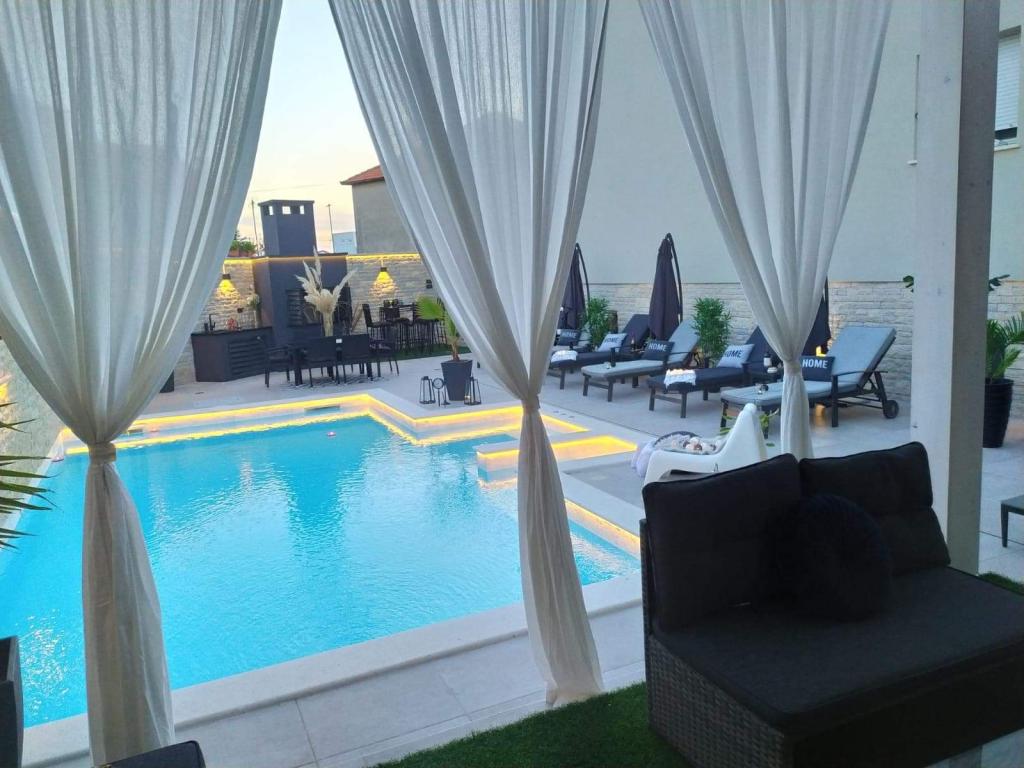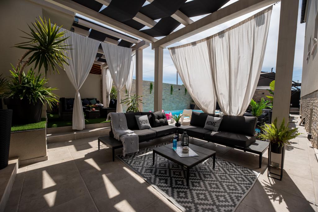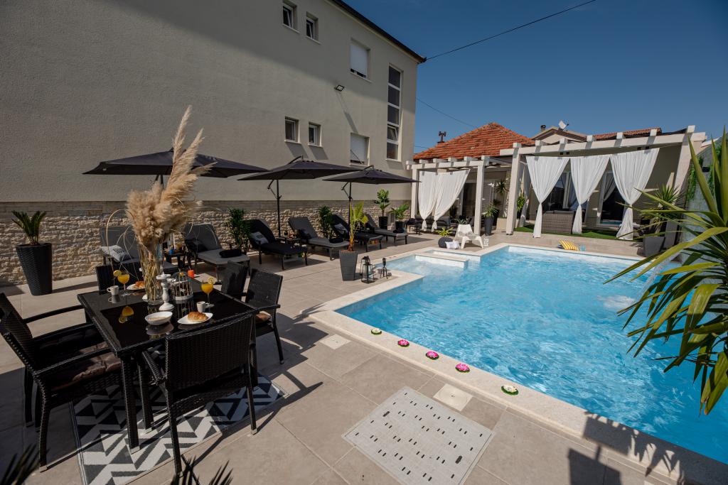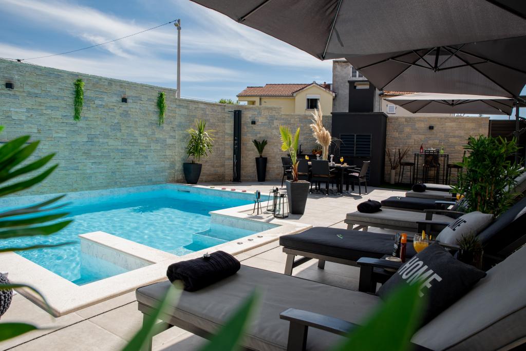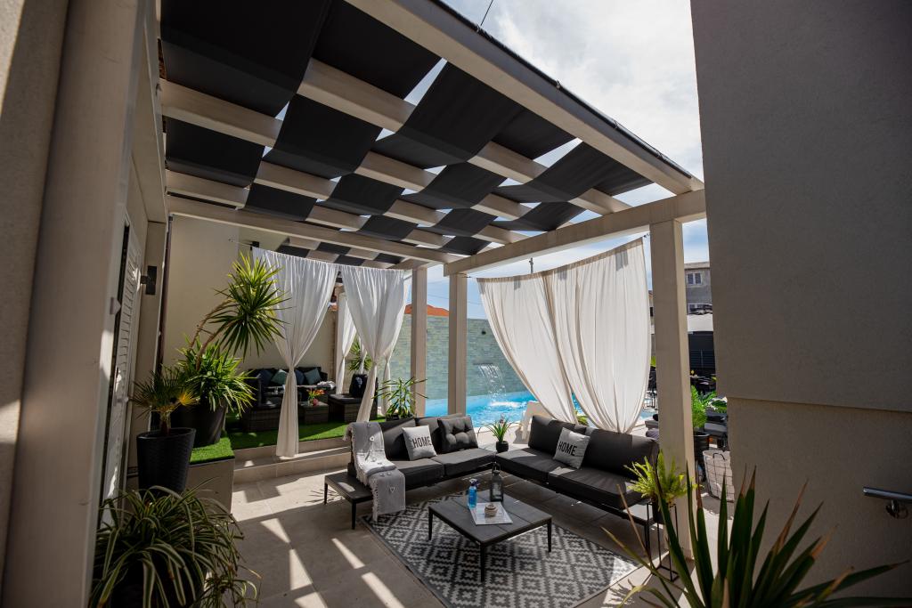Apartamente recent moderne, dotate cu tot (lenjerie de pat, prosoape, smart tv, wi-fi, aer condiționat, vase, prim ajutor, literalmente la ac și fir! Măști și dezinfectare la intrare!) Ca parte a terasei apartamentului (care este combinat cu alte apartamente se poate conecta pentru un grup mare) intrare separată, 6 locuri de parcare. Peste drum 2 brutării, magazin alimentar Bakmaz, la doar 3 minute de mers pe jos de magazinul de reduceri Tommy, la 5 minute de mers pe jos de Kaufland, Interspar, la 5 minute de centrul sportiv Višnjik (tot felul de terenuri de sport, pistă de jogging, sală de joacă pentru copii în aer liber), în cartier de coafură, salon de înfrumusețare, salon de masaj, pizza cu taxi, centru comercial Galerie oraș .... 10-15 minute pe jos sau 5 minute cu mașina până la cea mai apropiată plajă Kolovare, piscină .... 15 minute pe jos sau 5 minute cu cu mașina până în centrul orașului (peninsula) ... 15 minute cu mașina toate plajele mari, plaja cu nisip - kite surfing, Ljubac, Zaton, Pinija, Petrcane, Sukosan, Nin .... De asemenea, organizăm transport la și de la aeroport și excursii cu barca cu motor la insule, scufundări sau pur și simplu vezi delfini ... Din acest an piscină încălzită, grătar !!