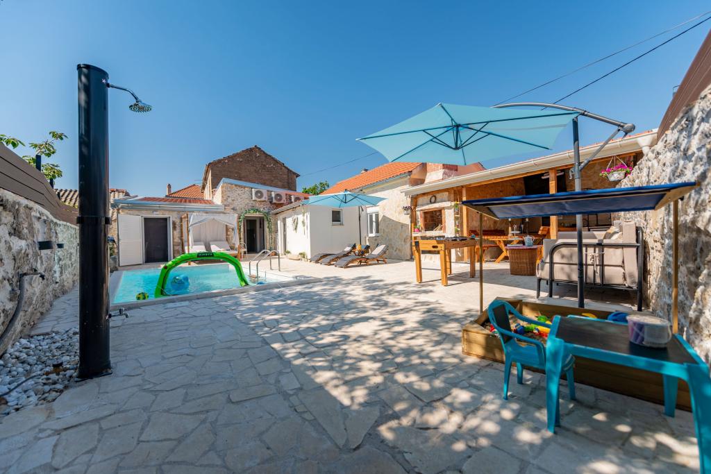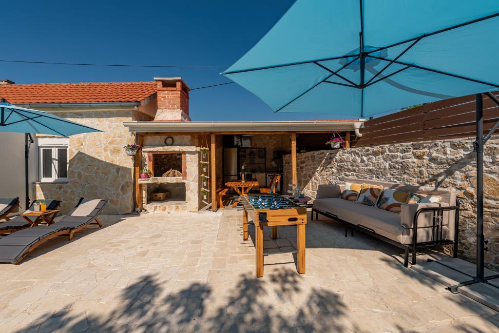 Casa Filotea, construită din piatră acum 80 de ani și renovată în 2024, este situată în Zemunik Donji. Spațiul interior este de 80 de metri pătrați, iar curtea este de 150 de metri pătrați. Curtea este înconjurată de un zid vechi de piatră care ascunde priveliștea trecătorilor și vă permite să vă relaxați în liniște și intimitate. Întreaga proprietate este doar a dumneavoastră, nu există vecini direcți, proprietarul locuiește într-o casă la 200 de metri distanță de dumneavoastră. O piscină exterioară, PlayStation 4, 4 televizoare Smart, fotbal de masă, darts, nisip, bucătărie interioară și exterioară, 3 dormitoare, 3 aparate de aer condiționat, 3 băi, parcare privată cu 3 locuri și o gazdă care vă stă mereu la dispoziție vă garantează o vacanță minunată. Bine ați venit!
