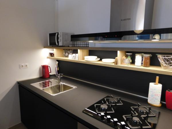 Bun venit și o mulțime de detalii grijulii pentru un sejur plăcut și fără griji. Complet echipat, nou, curat, ordonat, confortabil. Paginilor le lipsește imagini cu frumoasa panoramă a orașului, mai ales seara. O recomandare pentru toată lumea!