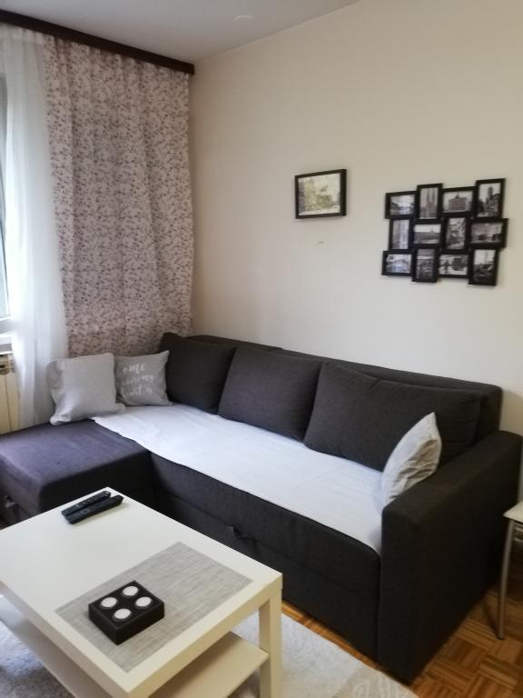 Apartament 40m2 situat într-o clădire rezidențială, potrivit pentru 1-4 persoane. Este complet utilat (TV prin cablu, internet wireless, aer conditionat) mobilat frumos. Trebuie doar să aduci bunăvoință cu tine, totul se află în apartament. In cladire se afla farmacie, magazin, brutarie, cafenele. Apartamentul se află la 3 minute de mers cu mașina de Târgul din Zagreb, Muzeul de Artă Contemporană, Avenue Mall și Hipodrom, Lacul Bundek și Arena Zagreb și Sala de concerte Vatroslav Lisinski nu sunt departe și la 10 minute de mers cu mașina de centrul orașului. , gară sau autogară. Transportul public este la 15 metri de clădire. Există o parcare gratuită în fața clădirii. Dacă ne vizitați o dată, suntem siguri că veți fi întotdeauna bucuroși să veniți la noi. Lista de prețuri depinde de numărul de persoane, durata șederii și data șederii