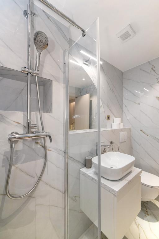 Facilitatea noastră a fost deschisă în iulie 2025 și oferă 12 apartamente moderne și confortabile într-o locație liniștită în centrul orașului Zagreb. Toate apartamentele sunt situate în subsolul complet renovat al clădirii. Fiecare unitate are un pat dublu, iar cele două mai mari pot găzdui suplimentar o a treia persoană cu ajutorul unui pat pliant. Fiecare apartament are o baie privată cu facilitățile necesare și prosoape curate pentru fiecare oaspete. Nouă apartamente studio conțin bucătării compacte dotate cu frigider, aragaz, cuptor cu microunde, fierbător și veselă de bază - ideale pentru prepararea unor mese ușoare. Restul unităților sunt camere Deluxe care nu au bucătărie sau frigider. Toate unitățile sunt decorate modern, cu aer condiționat, încălzire prin pardoseală și ferestre izolate fonic, asigurând confort maxim pe tot parcursul anului. Oferim check-in automat ușor prin cod, iar gazdele noastre sunt disponibile pe tot parcursul sejurului dumneavoastră pentru orice întrebări sau asistență.