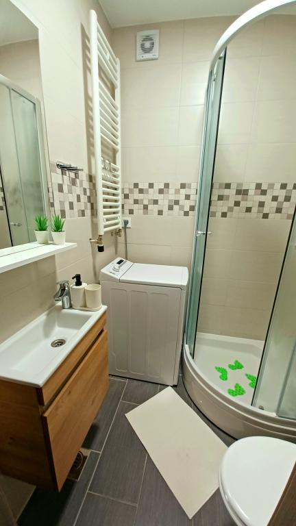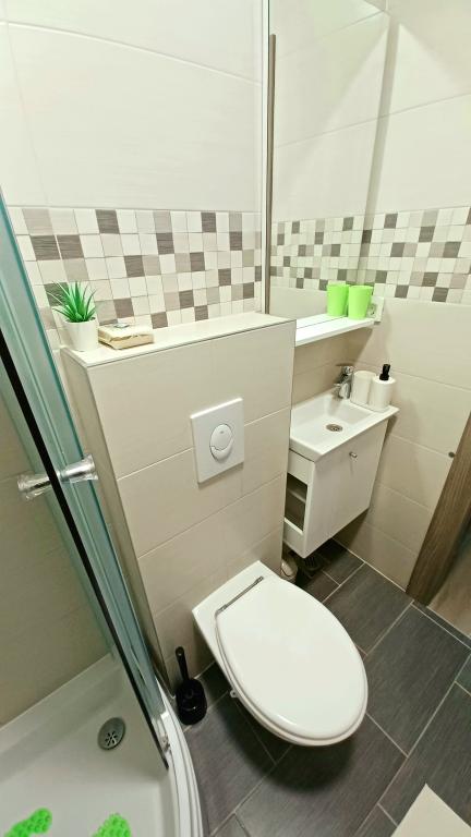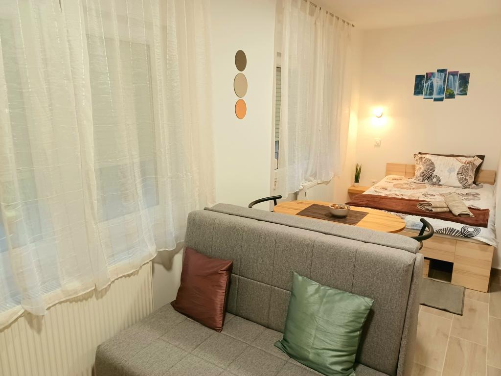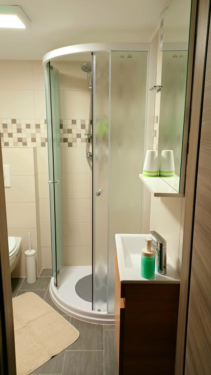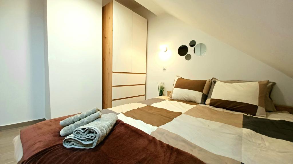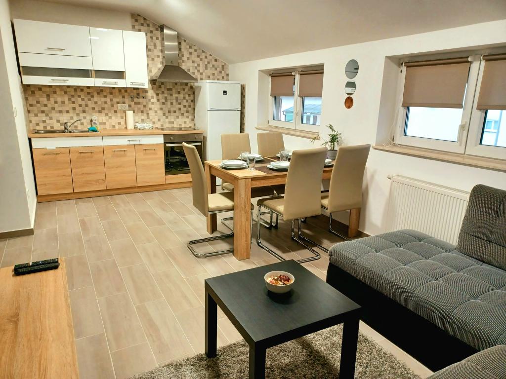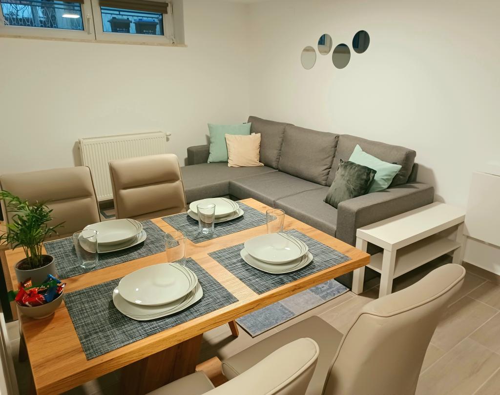 Facilitatea este formată din 6 unități de cazare, cu o capacitate de până la 11 persoane. Fiecare unitate de cazare are bucătărie și baie proprie. Apartamentele sunt situate într-un sat liniștit, pe o stradă fără ieșire, cu ieșire pietonală la drumul principal (50 m). Legături excelente de transport, aproape de restaurante (300 m) și magazine (100 m). Distanța față de centrul orașului este de aproximativ 20 de minute cu mașina, bicicleta sau transportul public. Poziționarea excelentă a apartamentelor pentru oaspeții care vin din motive de sănătate, datorită proximității mai multor spitale și clinici.