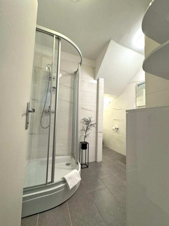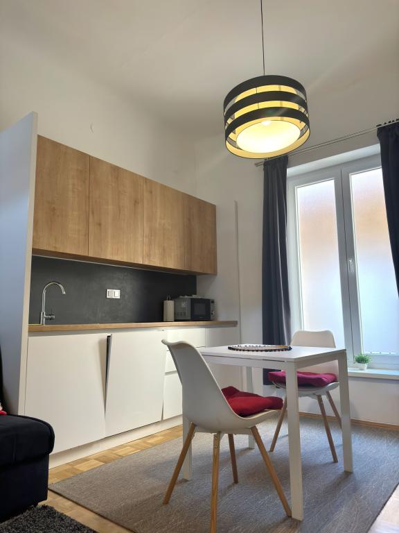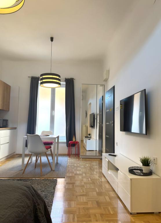 Apartamente în inima Zagrebului – Frankopanska 11 Căutați cazarea perfectă în centrul Zagrebului? Într-o locație prestigioasă pe strada Frankopanska, vă oferim trei apartamente decorate modern, ideale pentru un sejur scurt sau lung. Ofertă de cazare: Apartament cu un dormitor (50 m²) – un apartament spațios care include o bucătărie complet utilată, un living confortabil, un dormitor separat și o baie. Potrivit pentru până la 4 persoane. Două apartamente studio (aprox. 30 m²) – spații compacte, dar funcționale, cu o capacitate de 3 persoane și 2 persoane, perfecte pentru cupluri sau călători individuali. Bucătăriile sunt complet utilate: Mașină de spălat vase Cuptor cu microunde Fierbător electric Toate ustensilele și vesela necesare pentru o experiență culinară completă O locație care inspiră: Într-o zonă strict pietonală, înconjurată de magazine, muzee, restaurante și cafenele La 7 minute de mers pe jos de piața principală din Zagreb (Trg bana Jelačića) La 3 minute de mers pe jos de Teatrul Național Croat (HNK) Stația de tramvai la doar 50 de metri distanță