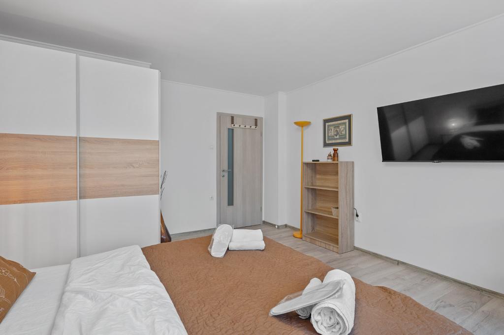 Check-in-ul a fost ușor (am ajuns noaptea). Apartamentul este bine utilat (baie cu produse cosmetice, bucătărie cu tot ce este necesar, aer condiționat, Netflix etc.). Paturile sunt confortabile, impecabil de curate, prețul este decent... Gazdele sunt amabile!