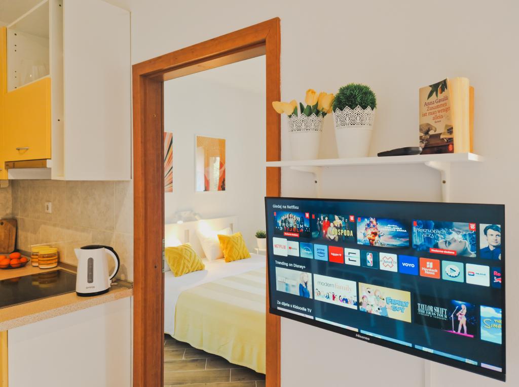Taxa de rezidenta este inclusa in pret. Document de confirmare a rezervării la rezervareApartament curat și frumos, care oferă ceea ce promite. Curat și ordonat, în bucătărie există aragaz, frigider și încălzitor de apă, suficiente vase și tacâmuri. Uscător de păr disponibil. Aer condiționat, TV, WiFi gratuit. Apartament direct pe malul mării, în fața casei există o plajă betonată. Există 3 restaurante lângă casă cu mâncare foarte bună, dar, în ciuda acestui fapt, vă puteți bucura de apusuri de soare frumoase în liniște seara. Orașul Lastovo, unde există o brutărie, farmacie, oficiu poștal, este la 2 km distanță. Gazdele locuiesc în casă, dar nu le vezi, decât dacă ai nevoie de ceva - atunci sunt disponibile imediat și încearcă să ajute - foarte prietenoase și de ajutor. Foarte accesibil, având în vedere ceea ce se oferă. Recomand cu siguranță să stați la ei.