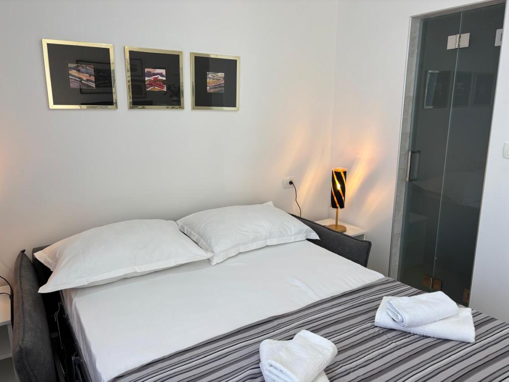 Garsoniera este complet și modern utilată, situată la primul etaj al unei case de familie, aflată la 30 m de mare și de o frumoasă plajă cu pietriș, cu intrare lină în mare. Există o parcare pentru o mașină în fața casei, iar în curte există un foișor cu grătar și mese pentru stat la umbră. În apropiere se află magazine, restaurante, o cofetărie, iar la intrarea în oraș se află centrul comercial Plodine.