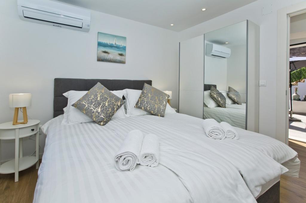 Casa este formată dintr-un apartament de 30 m2 și o curte de 20 m2. Apartamentul este format dintr-un dormitor, baie, living cu bucătărie și o mică cameră de depozitare. Camera are o priveliște frumoasă și dispune de un pat dublu sub care se află o cutie de depozitare a bagajelor de 160x200 cm. Există, de asemenea, un dulap mare cu uși glisante, două noptiere cu veioze și aer condiționat. Baia are duș, calorifer, ventilator, chiuvetă și toaletă. Livingul cu fereastră și bucătăria sunt conectate. Livingul are aer condiționat, canapea, televizor, masă de bucătărie cu scaune. Bucătăria este compusă dintr-un cuptor, plită, mașină de spălat vase, frigider, cuptor cu microunde, încălzitor de apă și prăjitor de pâine. În mica cameră de depozitare se află o mașină de spălat, un boiler și un suport pentru încălțăminte. Curtea este destinată socializării și relaxării și există un șezlong, umbrelă de soare, scaune și un set de grădină. Acesta este un apartament situat la primul etaj al casei familiale, iar în fața sa se află o curte mare.