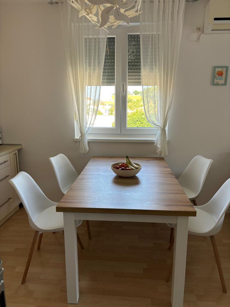 Apartamentul este frumos! Decorat modern, extrem de îngrijit și spațios și totul este la fel ca în poze. Un plus este minunata terasa acoperita de care te poti bucura si tu. În apartament erau suficiente prosoape, hârtie igienică, vase, vase... Multe lucruri nu ne așteptau în anii trecuți, ceea ce ne-a făcut și mai entuziasmați (cum ar fi cafeaua, condimentele, uleiul, oțetul, prosoape de hârtie, prosoape de bucătărie. , geluri de duș, detergent pentru spălat vase, lapte, apă și fructe de bun venit...) Felicitari pentru asta! Gazdele sunt foarte drăguțe, extrem de primitoare și primitoare și acordă atenție fiecărui detaliu pentru a face oaspeții să se simtă mulțumiți și confortabili. De asemenea, plajele și facilitățile suplimentare sunt în apropiere. Toate recomandările celor care aleg această cazare, în special familiilor cu copii. Dragi gazde, ne-a plăcut foarte mult vacanța noastră și vă mulțumim încă o dată pentru ospitalitatea dumneavoastră minunată.