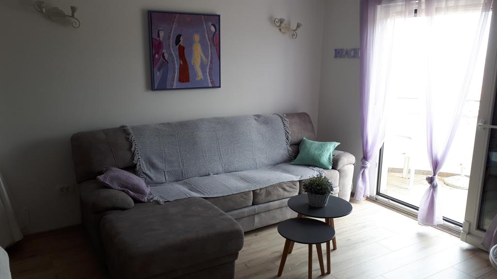 Apartament nou, modern și mobilat cu gust, cu două dormitoare, aer condiționat în fiecare, cu vedere la mare, la 20 m de plajă (peste drum).