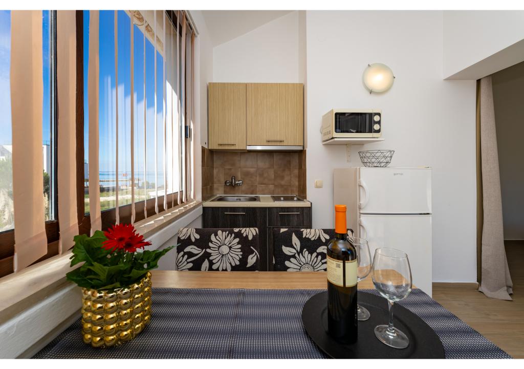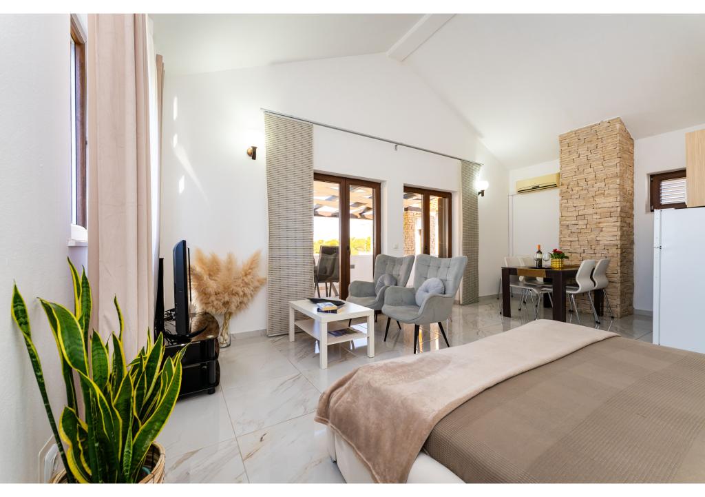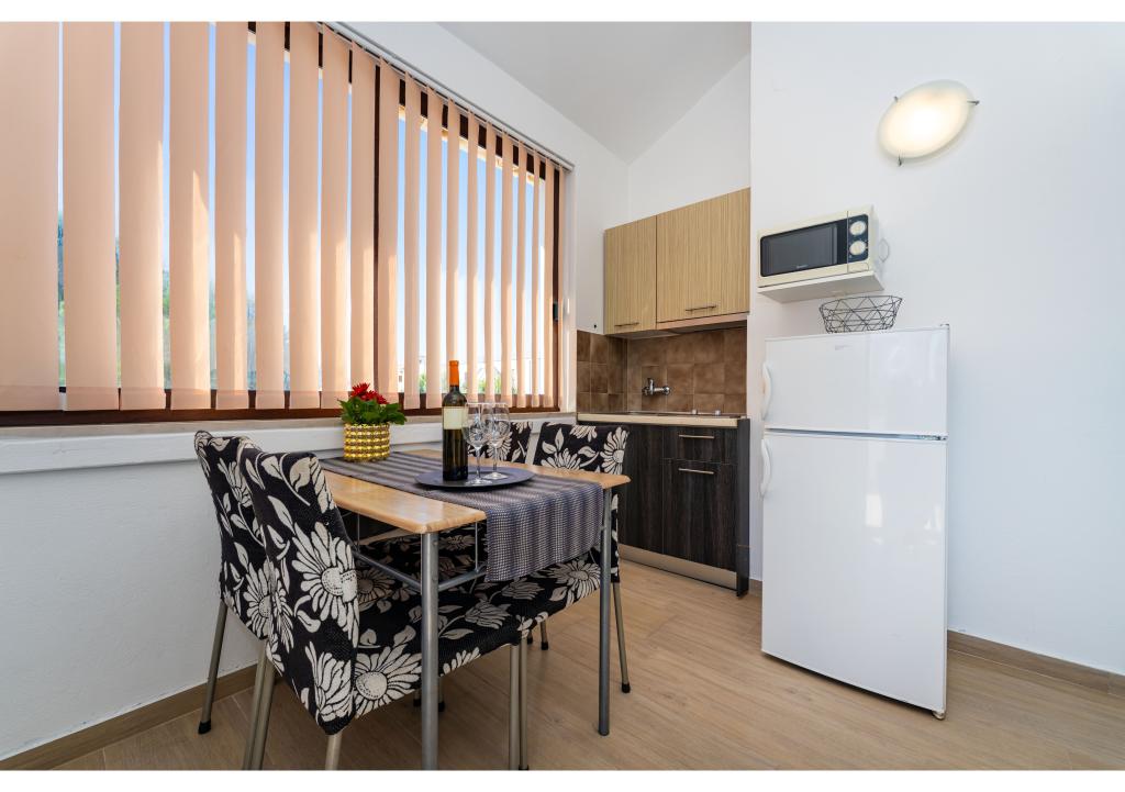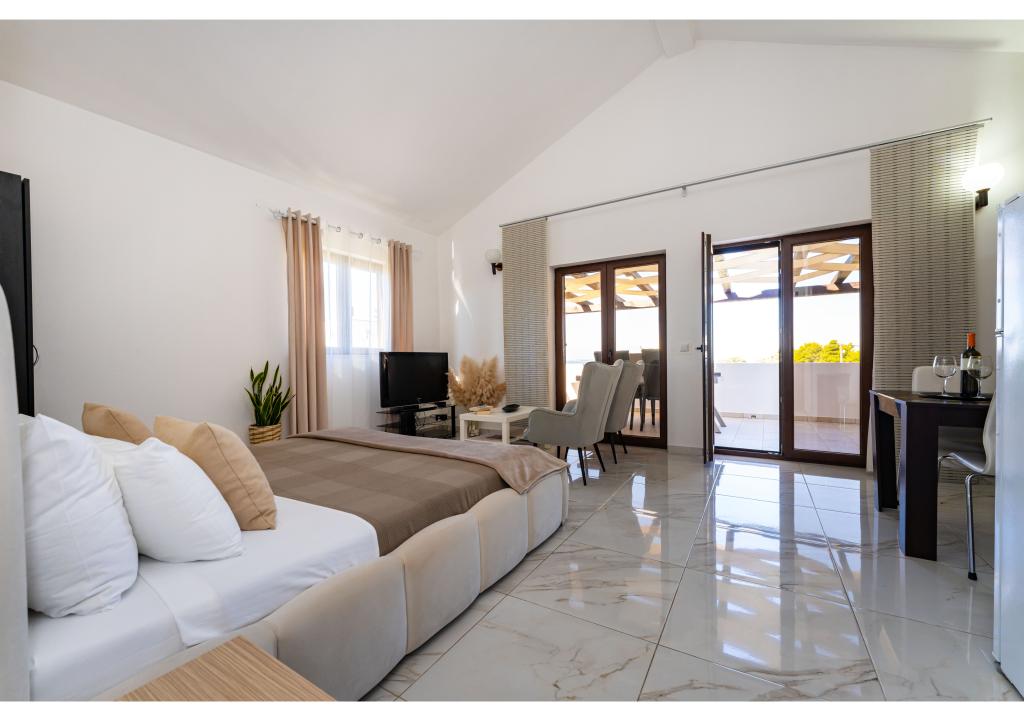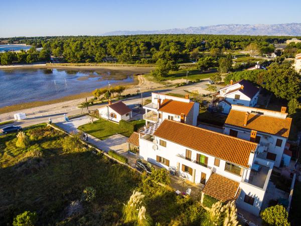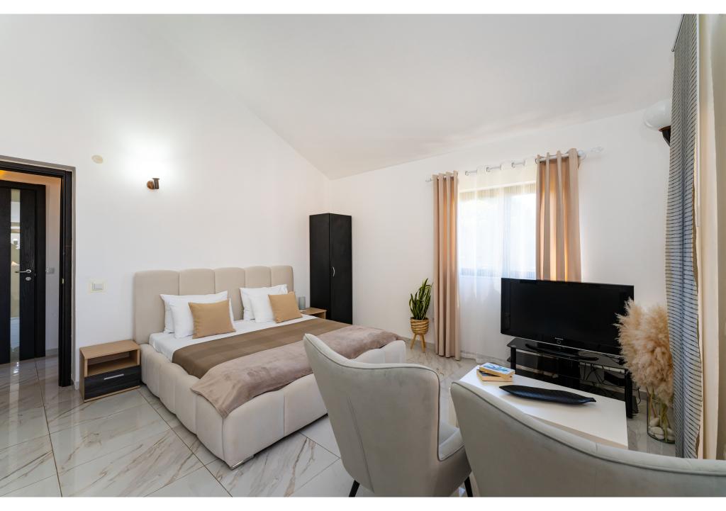 Apartamente primul rând la mare. Terasa cu vedere la mare. Golful este nisipos și puțin adânc. Apartamentele sunt in apropierea centrului turistic Zaton si sunt dotate cu aer conditionat, internet, TV satelit, parcare, gratar etc.