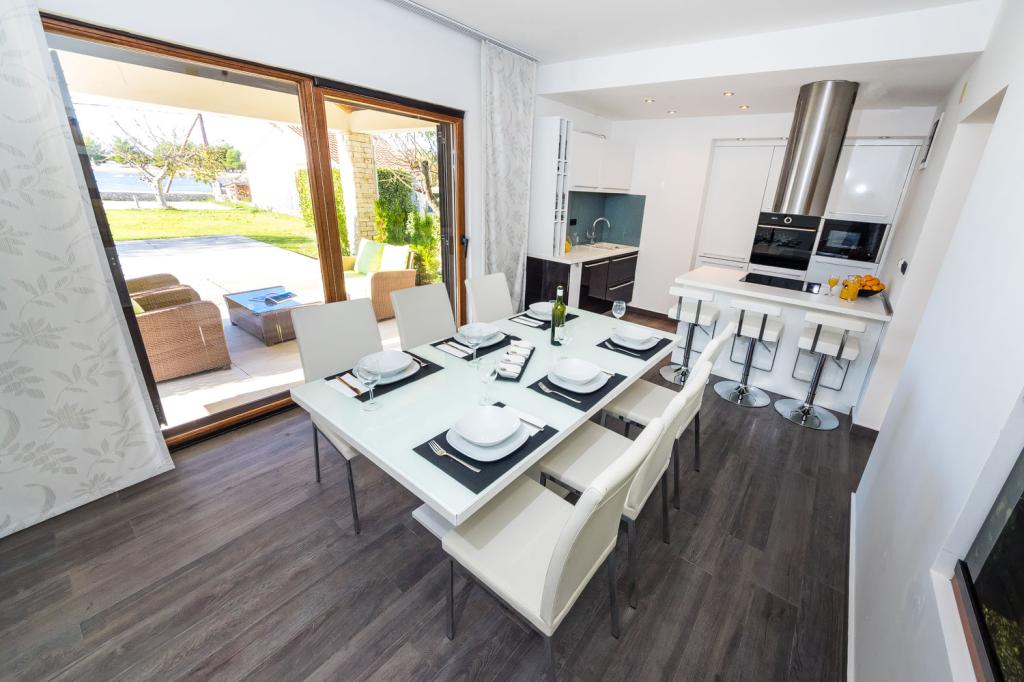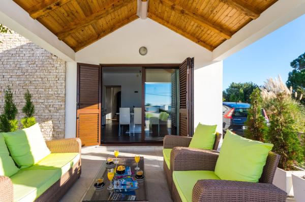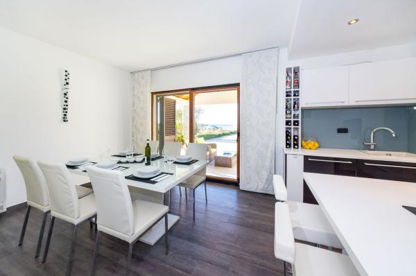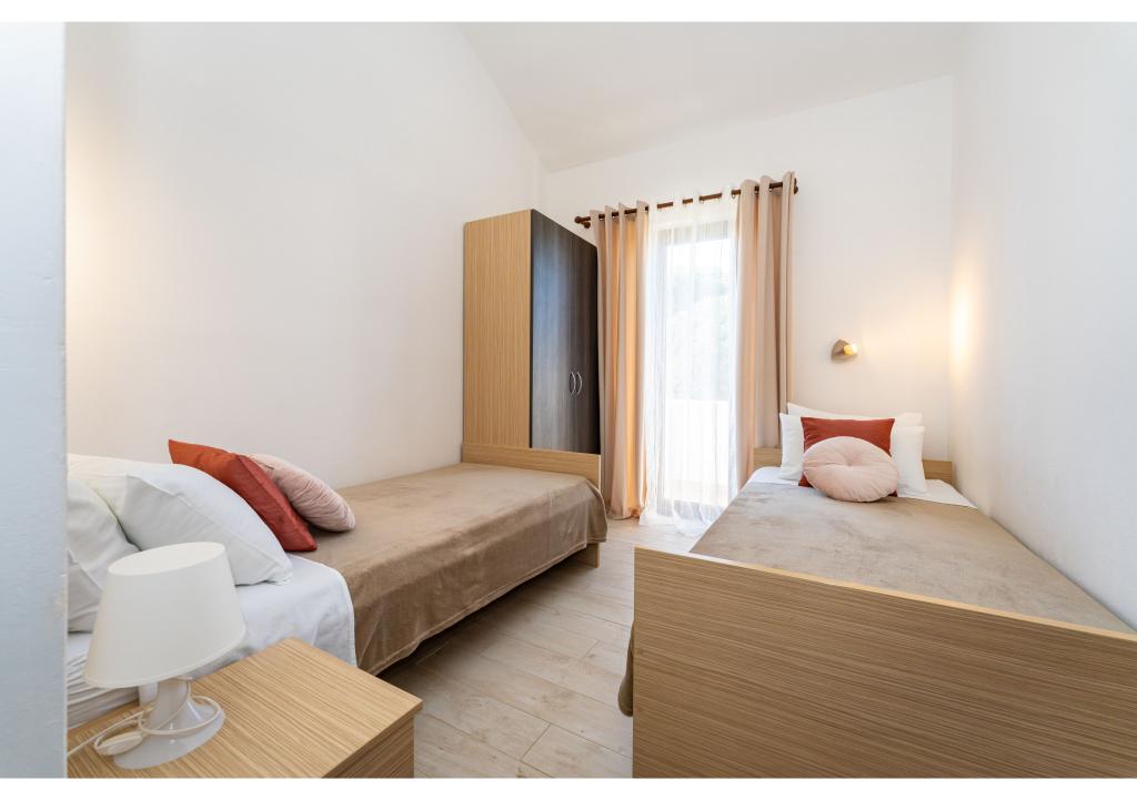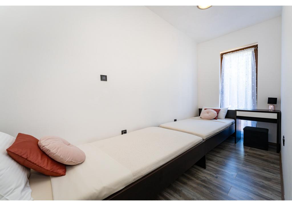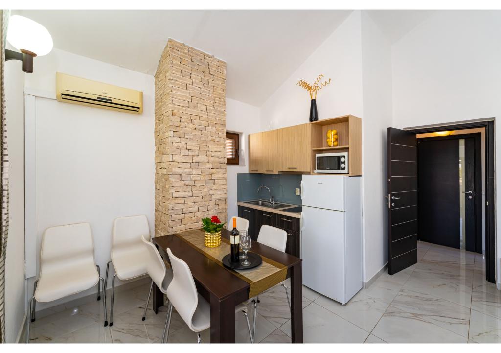 Apartamente primul rând la mare. Terasa cu vedere la mare. Golful este nisipos și puțin adânc. Apartamentele sunt in apropierea centrului turistic Zaton si sunt dotate cu aer conditionat, internet, TV satelit, parcare, gratar etc.
