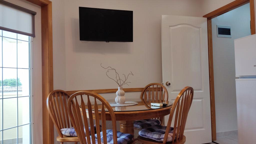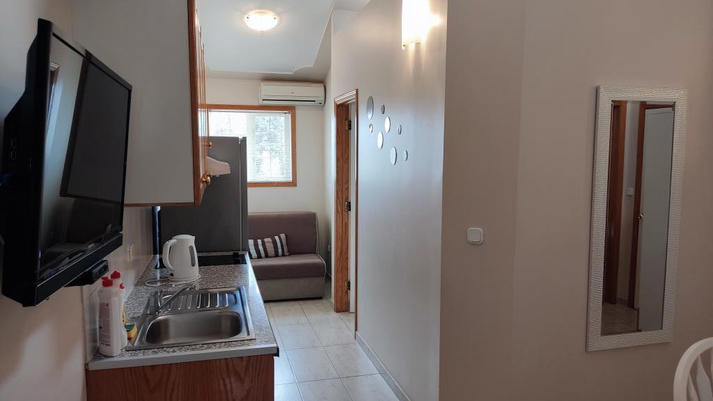 Am fost cazati intr-o camera 2+1. Apartamentul era curat si parfumat. Marea chiar peste drum. Priveliștea direct la mare și apusul... singurul lucru care a fost puțin în minus este lipsa spațiului de depozitare pentru trei persoane, dar se poate gestiona. Și apa a fost teribil de greu de reglat - fie înghețată, fie fierbinte, dar acestea sunt într-adevăr doar lucruri mărunte. Proprietarul a fost amabil. La cerere, ne-a oferit și prosoape suplimentare fără costuri suplimentare sau alte cuvinte. .In apropiere exista si o statiune care ofera seara standuri de restaurant etc. chiar recomand