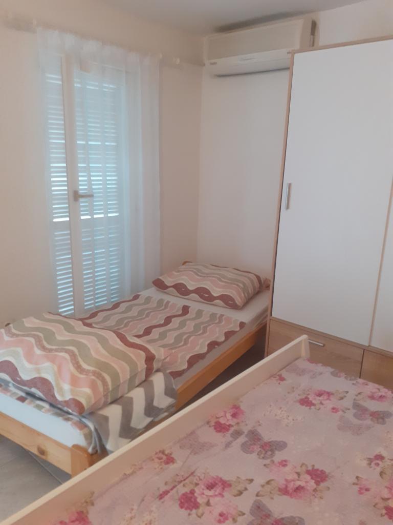 Apartamentele sunt situate lângă tabăra Zaton, municipiul Nin, un loc frumos și plăcut, care are o plajă de nisip, iar mediul oferă o vacanță de familie perfect liniștită. Fiecare apartament este format dintr-o cameră mare cu două paturi și un living cu o bucătărie care are o canapea extensibilă pentru două persoane, o baie și un spațiu de depozitare. Apartamentul are aer condiționat și are propria terasă mare acoperită, parcare securizată în curte și posibilitatea de a folosi grătarul.