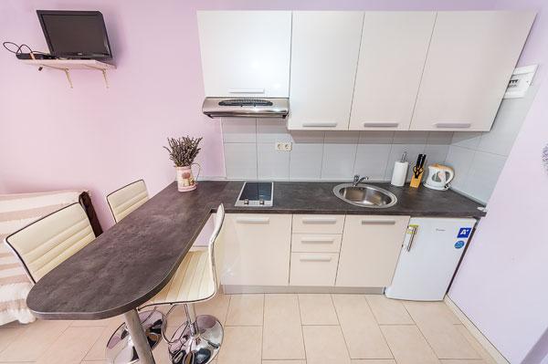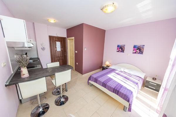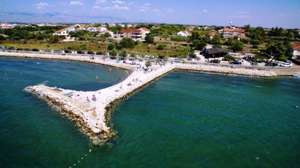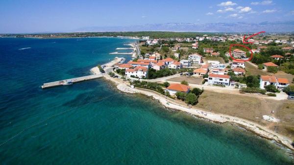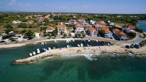 Apartamentele sunt situate la 150 de metri de mare și plaja Porat și la 300 de metri de plaja de nisip Pliša și sunt într-o locație ideală dacă aveți copii mici, unele apartamente au vedere la mare de pe terasă. Sunt inconjurate de o curte mare si parcare pentru masina ta. Apartamentele sunt complet echipate, dotate cu aer condiționat, TV prin satelit și WIFI, care este inclus în prețul de închiriere, precum și curățenia finală. În apartamente sunt disponibile lenjerie de pat și prosoape curate. Acestea sunt la 20 de minute de mers pe jos de Zaton Holiday Resort și acolo vă puteți bucura de terenuri de tenis, minigolf, călărie și toate activitățile acvatice. De asemenea, suntem la 5 minute cu mașina de vechiul oraș istoric croat Nin.