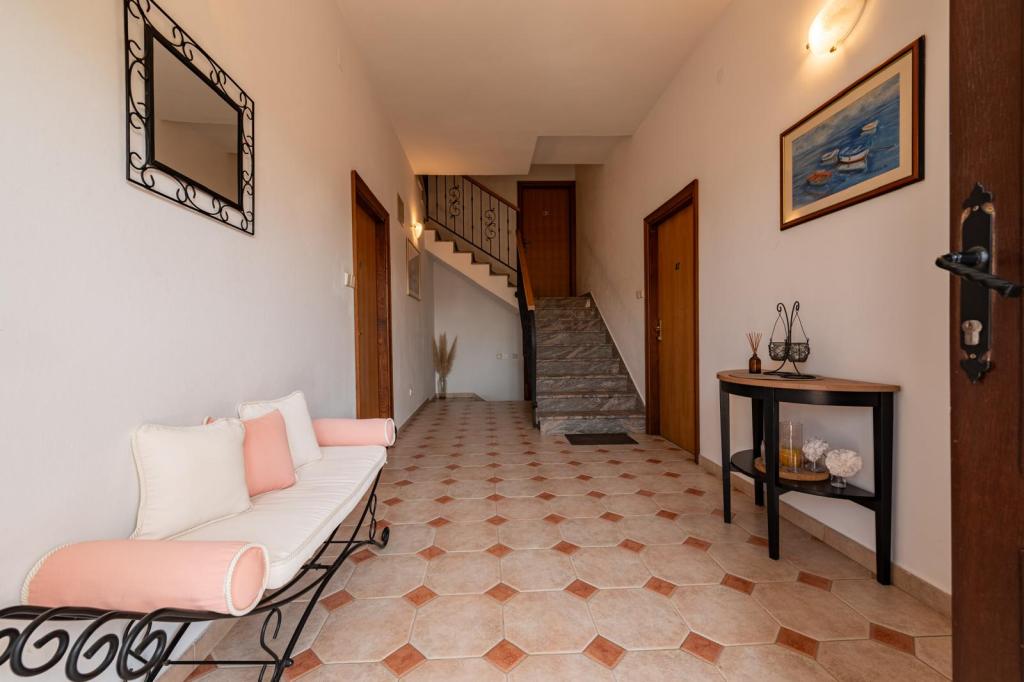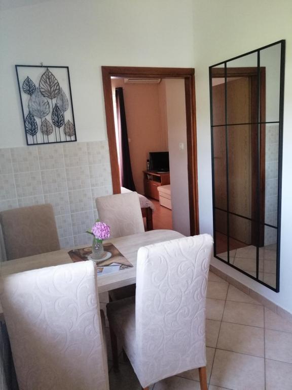 O primire călduroasă în apartament. Pe ciocolată pernă, flori pe masa. Un cadou la plecare. Proprietarul foarte util, cordiale. Apartamentele foarte curat și frumos decorate. Grădină cu mulți pomi fructiferi și flori, predivno.More foarte aproape, loc de joacă pentru copii, cafenea și restaurant, de asemenea, .Proveli am fost foarte confortabil și de sărbători sunt de neuitat. Vom veni anul viitor. familii cu copii. Recomandarea