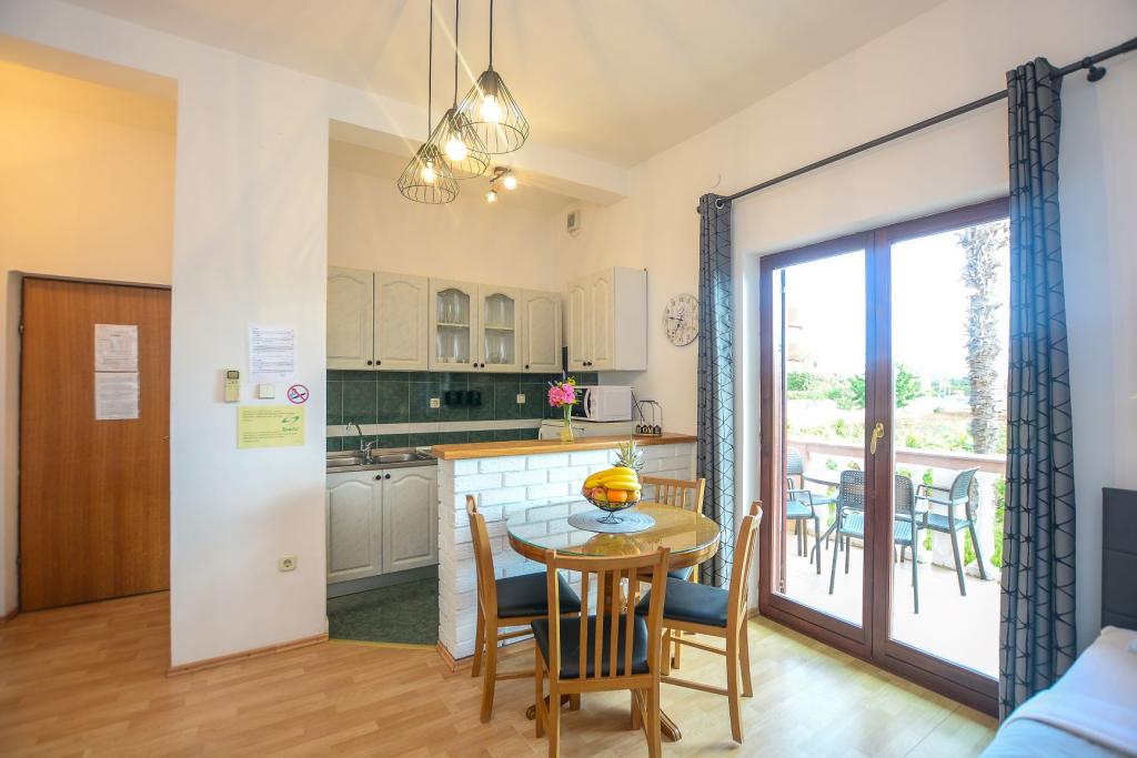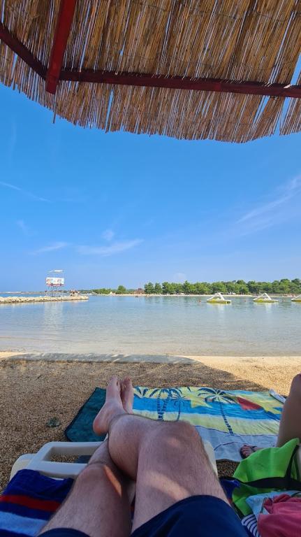 Totul este ca in poza.. Curat, placut, confortabil, all inclusive... Tot ce ai nevoie este asta... Pâine de pâine, ceainic, cuptor, aragaz cu 5 gaze, mașină de spălat vase mare, frigider, congelator, ce vrei să spui... Proprietarii sunt amabili, orice ai nevoie sunt acolo. Ei se ocupă de tot și găsesc o soluție rapidă pentru orice... Jos pălăria... Apoi o brutărie, fitness pe plajă, jocuri pe plajă, piețe pe plajă, cafenea și înghețată pe plajă, aparat de clătite, toaletă pe plajă... Toate acestea de la apartament la 150 m... Lumea. .. Plaja este cu pietricele mici, si apoi cel putin 300 m de apa putin peste genunchi... Ideala pentru copii... Seara, după ora 18, vă puteți plimba gratuit în jurul parcului de camping Zaton Aici gasesti jocuri gonflabile, carusele, restaurante, piete... Vom ajunge acolo