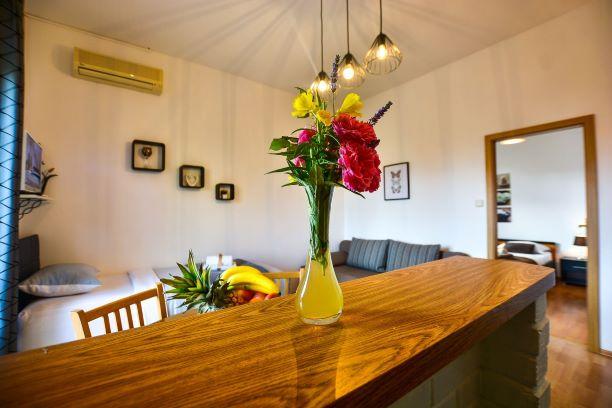 După mulți ani petrecuți în Croația, am găsit un loc în care merită să ne întoarcem. Apartamentele sunt curate ca o lacrimă, totul miroase a curat. Lenjerie de pat de calitate, stergatoare, paturi de top. Împrejurimile sunt ca dintr-un basm. Stați pe balcon și bucurați-vă de vedere la mare și verdeață. Plaja peste drum, brutărie și restaurant. Totul ca in poze. Renata și Elvis sunt oameni caldi și cordiali care ne-au cucerit în prima zi. Aceștia sunt adevărații proprietari pentru că te simți ca acasă cu ei și oaspetele înseamnă foarte mult pentru ei, nu doar bani. Am rezervat și pentru anul viitor și, din câte vedem, nu suntem primii. Mult succes si va dorim un sezon bun. Vanesa și Uroš