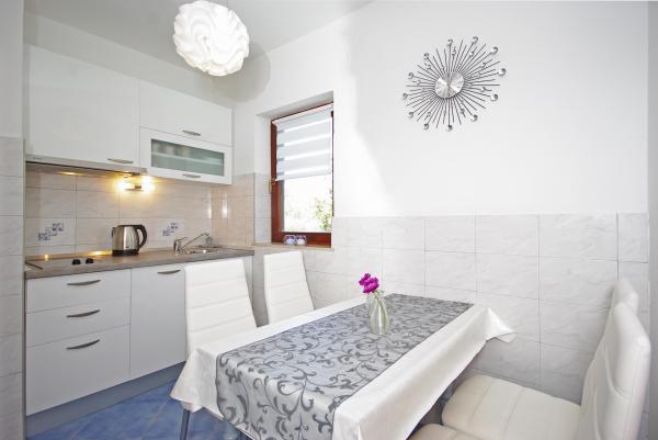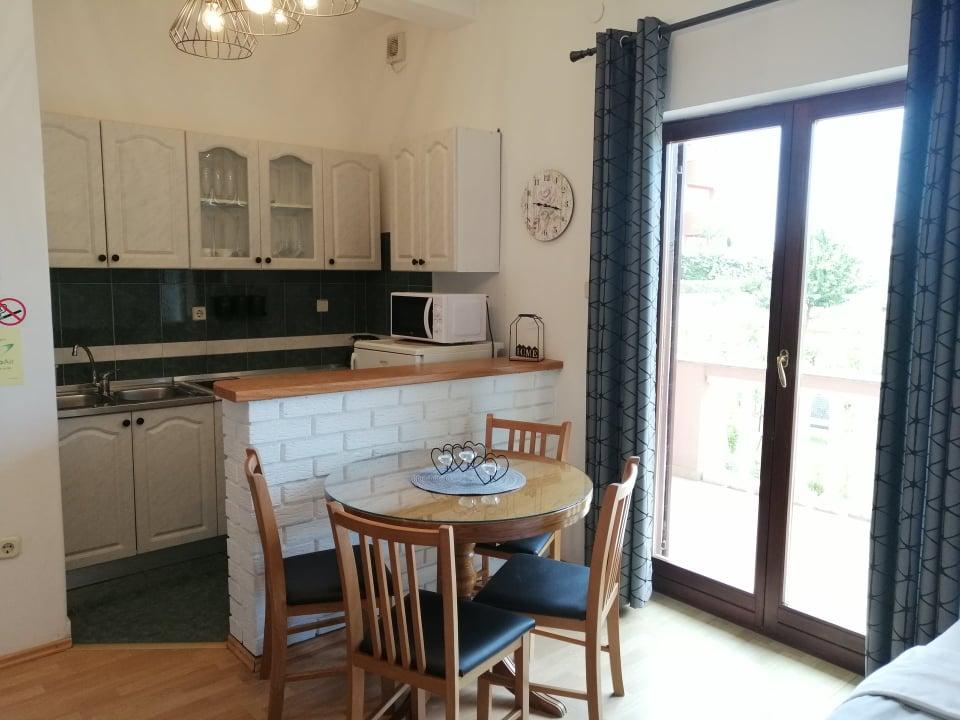Apartamentul era foarte curat și parfumat. Aranjament ideal de camere, balcon cu vedere la mare. Plaja este în apropiere. Proprietari foarte buni și folositori care trăiesc în această casă. Am primit o ceașcă de cireșe din grădina casei și un bomboane. Oaspeții pot lua culturi din grădină (legume și fructe). Există numeroase posibilități de ciclism. O vacanță minunată la începutul lunii iunie.