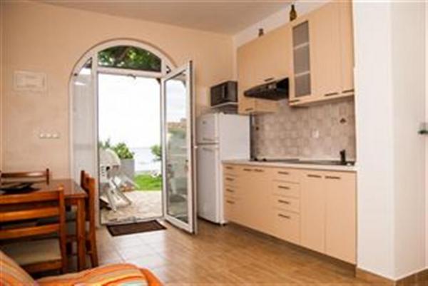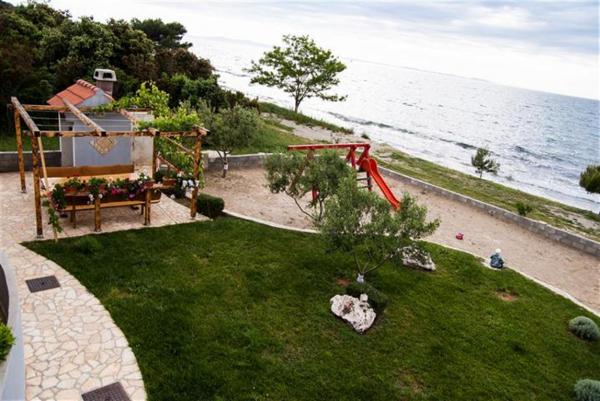 Apartamentele noastre sunt situate pe malul, la plaja acces necondiționat la mulțimi mari și zgomot. De la mare la doar câțiva metri, și sunt ideale pentru familiile cu copii, deoarece din grădină oferă loc de joacă cu nisip, cu leagăne, tobogane, în timp ce neglijent gratar sau se pot relaxa cu o băutură rece pe terasă. Toate apartamentele au vedere la mare și sunt dotate cu TV prin satelit și aer condiționat. Accesul scaunelor cu rotile este dificil. Animalele de companie nu sunt permise.