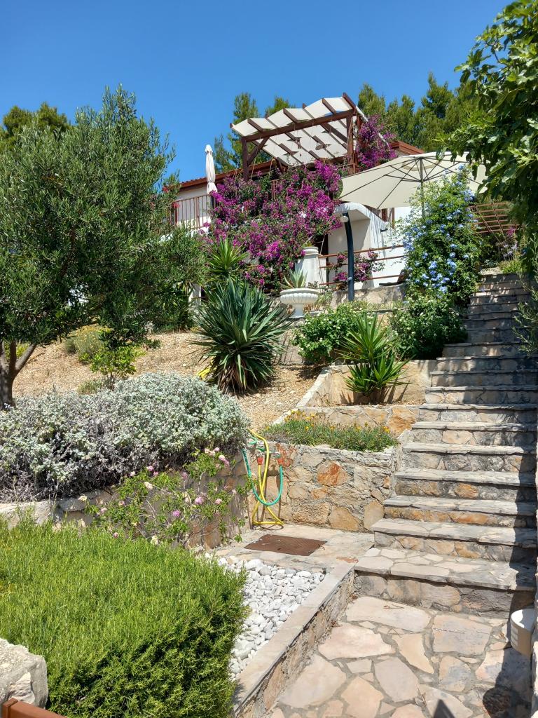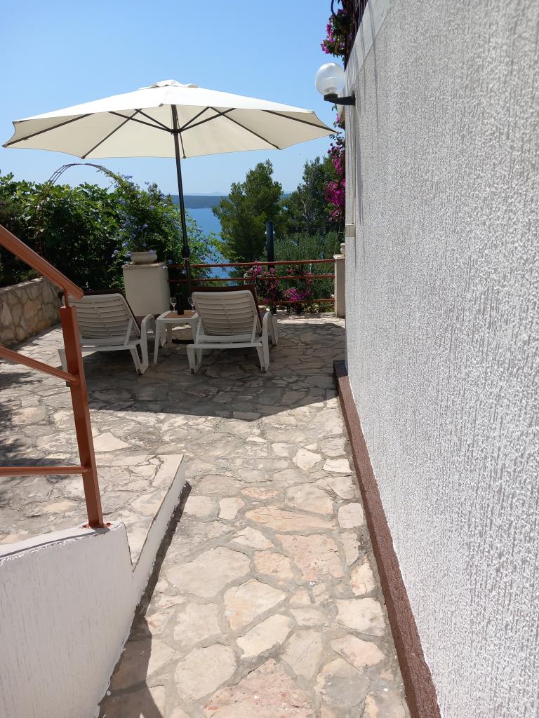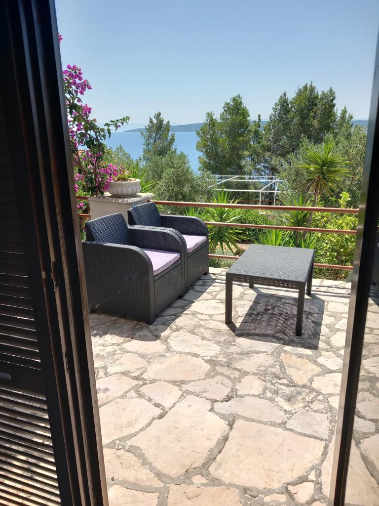 Închiriem un singur apartament complet utilat la un etaj separat al unei vile de familie, care se află la 130 de metri de mare (aer condiționat, wi-fi, TV prin satelit, mașină de spălat, cuptor cu microunde, aparat de cafea), ceea ce înseamnă că tu ești cel numai oaspeții și au intimitate deplină. Apartamentul este format din două dormitoare cu paturi duble, o bucătărie cu living (canapea extensibilă), baie, hol și o terasă mare cu vedere frumoasă la mare deschisă, insula Šćedro, Korcula și peninsula Pelješac, înconjurată de o grădină plină de diverse plante mediteraneene. Parcarea este in curtea imprejmuita. Gratar pe terasa. Există un duș solar în aer liber în curte. Plaje, restaurante, brutarie, loc de joaca pentru copii la o distanta de pana la 250m.