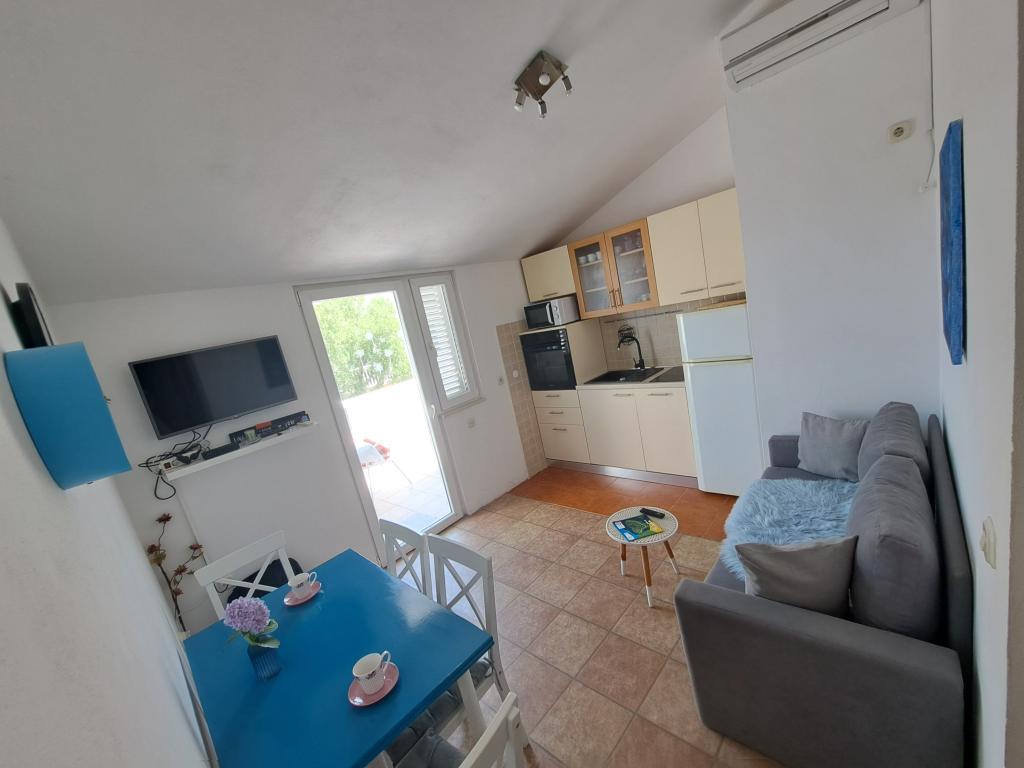 Apartamentul este suficient de mare pentru o familie cu copii (2-3). Bucătăria este bine echipată. Poate că-i va fi dor de cineva la cuptorul cu microunde. Nu este pentru noi. Este curat și ordonat. Camere spațioase. Paturile OK. Balcon cu vedere minunată pentru cafeaua de dimineață. Parcare privată securizată lângă casă la umbră adâncă toată ziua. Plaja este cu pietriș și ușor înclinată. Plaja se află la 1 minut de mers pe jos. Puteți face o scurtă înot și reveniți la apartament în 5 minute. Fără zgomot din cafenele și mașini. Insula este frumoasă. Proprietarii sunt foarte amabili și amabili. Nu sunt intruzive. Sunt acolo ori de câte ori este nevoie. Laudă! Ne-am repeta șederea aici.