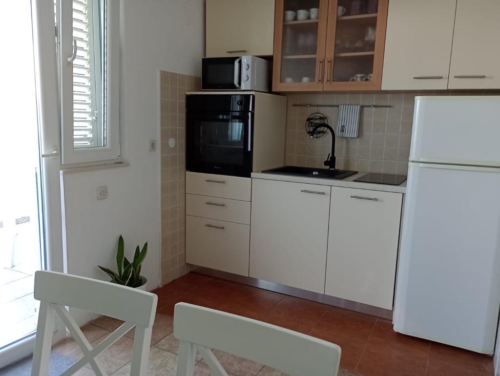 Ne-am distrat de minune în vacanță în apartamentele Moreta! Apartamentul este foarte spatios (un dormitor mare si o camera pentru copii, living cu bucatarie si sufragerie, baie), ingrijit si curat, are toate dotarile necesare si o terasa mare cu copertina (umbra toata ziua). În fața casei se află o grădină frumoasă și plină de verdeață, iar lângă casă o potecă îngustă de basm care duce direct la mare (cca. 40 de metri). Plaja este cu pietriș, accesul la apă este potrivit pentru copii mici (fără arici de mare), marea este curată, există și un loc umbrit sub pini în fiecare zi. Pe plajă sunt și leagăne. Magazinul este la doar 20 de metri. Dacă sunteți în căutarea unei vacanțe de familie liniștite, fără zgomot și aglomerație, acesta este locul ideal pentru relaxare!