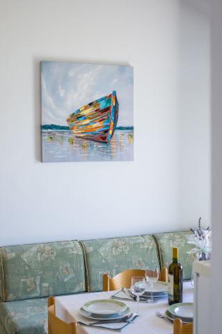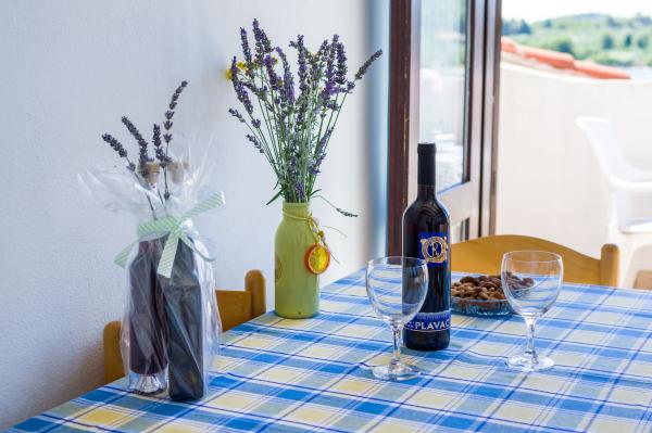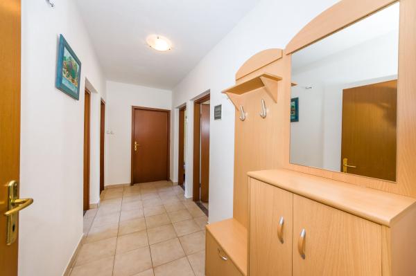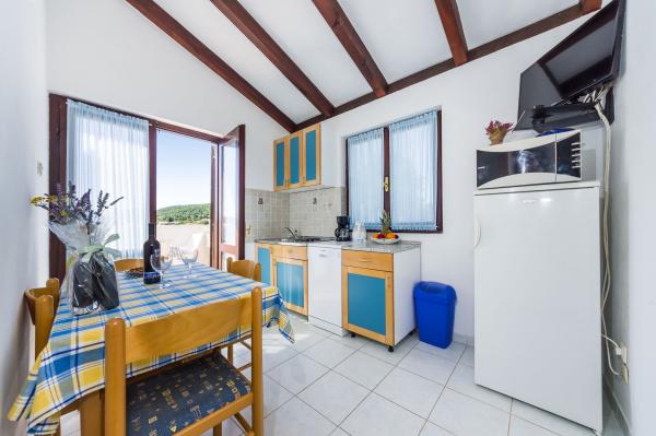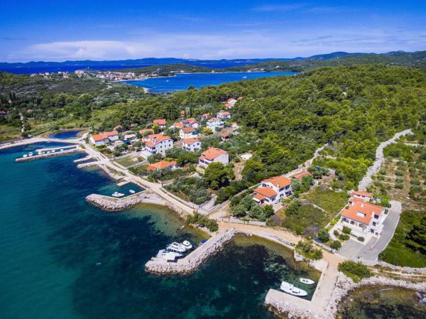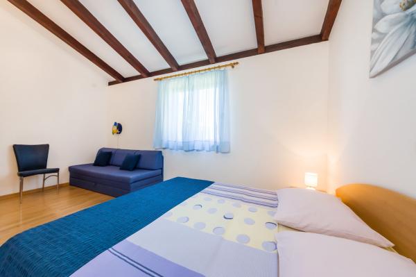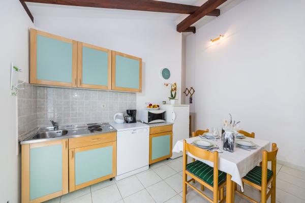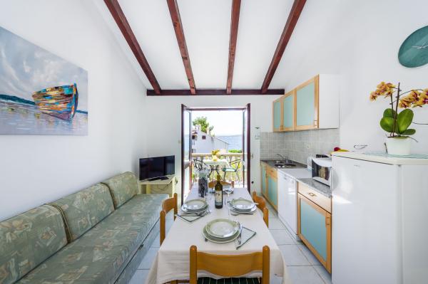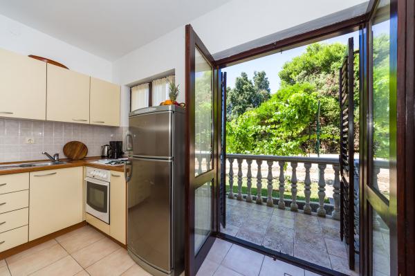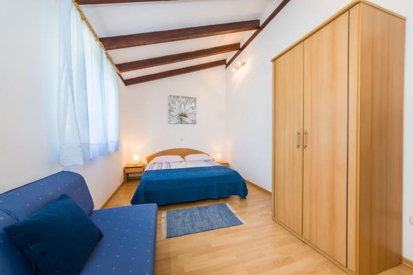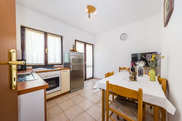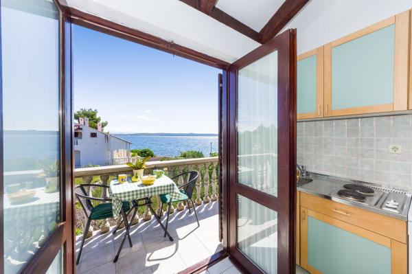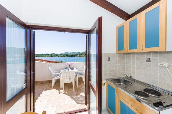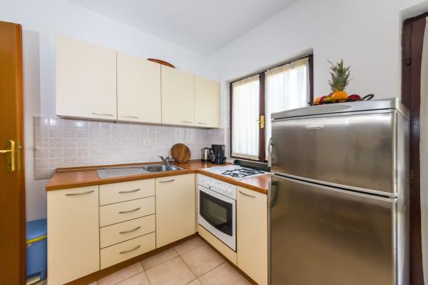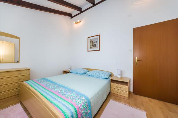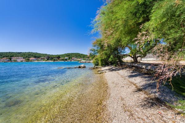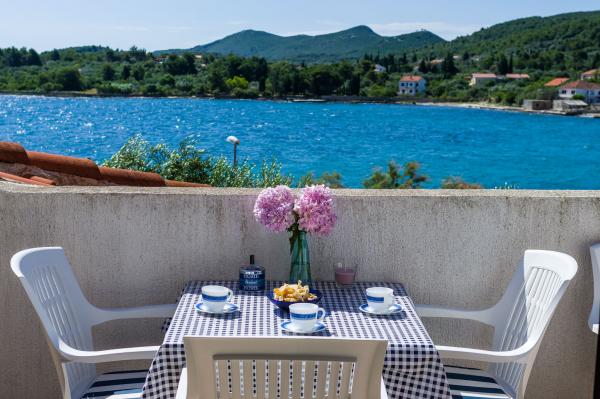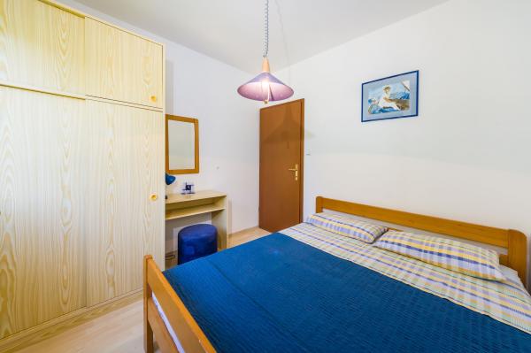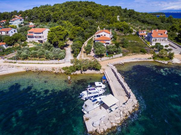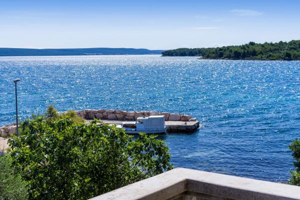 Apartamente complet utilate, aer conditionat, TV satelit, internet, ..... Situat intr-un golf linistit, PRIMUL RAND LA MARE. In curte se afla un gratar cu o terasa mare pentru intalniri placute de familie. Curtea este potrivita pentru copii, cu tobogan si leagan. . Parcarea este asigurata in curte. , In fata casei se afla o plaja, potrivita pentru copii mici.Din curte te afli direct pe plaja. Plaja este cu pietricele mici si are umbra naturala. Cea de-a doua plajă, parțial nisipoasă, se află la 150 m. În fața clădirii se află un mal (deg), deci este posibil să folosiți o dană pentru o bărci mică. Magazine mai mici și cafenele sunt la 150 m. Restaurant cu specialități din pește se află la 300 m. Până în centrul orașului aveți nevoie de o plimbare ușoară de 15 minute, unde se află restaurant, patiserie, piață, piață, oficiu poștal..... BINE ATI VENIT!!