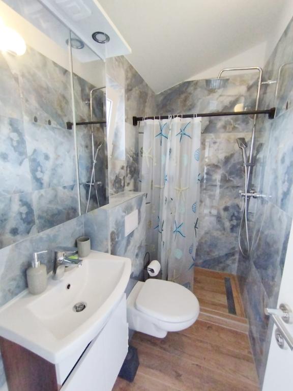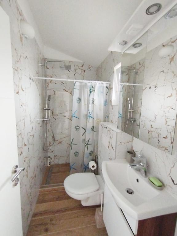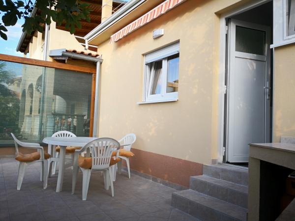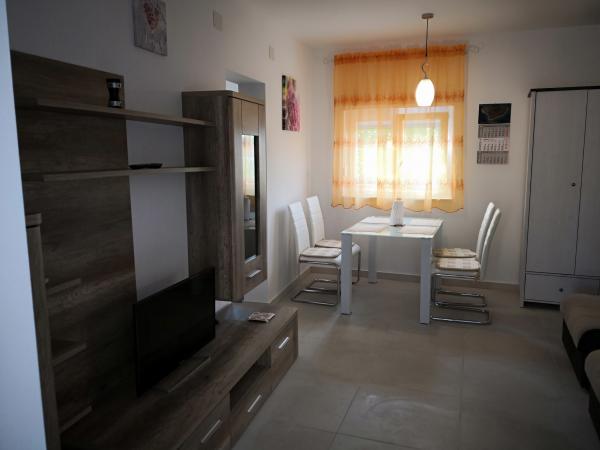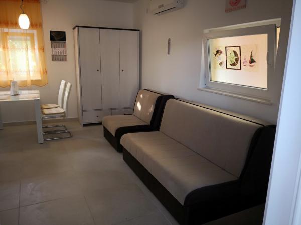 Apartamente confortabile cu aer condiționat, dotate cu tot ce aveți nevoie pentru o vacanță relaxantă în familie... Bucurați-vă de liniște, priveliștea de pe terasă și confortul apartamentelor noastre, pădurile de pini, traseele de drumeții și ciclism și plajele frumoase - indiferent dacă iti plac pietrele de nisip, pietris sau izolate... Tot ce ai nevoie este la o plimbare de 5-10 minute: magazin, cafenea, restaurant, oficiu postal, biserica, plaja, port... Asa ca nu ezita sa folosesti gratarul nostru: daca ceva nu merge bine, poți sări cu ușurință la magazin, iar dacă peștele arde - restaurantul este excelent... și te poți împrospăta înainte de a pleca la dușul exterior - așa că nu te deranjează că baia a fost ocupată de dvs. soție sau copii ;-) Mașina se poate odihni tot timpul în curte, iar tu o poți folosi pentru a explora două insule fără aglomerație cu multe frumuseți ascunse... Pentru că un loc liniștit nu înseamnă plictisitor: fiecare loc are ea propriul festival, sau propria-i vechime, sau propria-i frumusețe naturală - care te așteaptă să-l recunoști și să-ți umple sufletul cu el pentru toate situațiile în care ești alături de noi fugi :-)