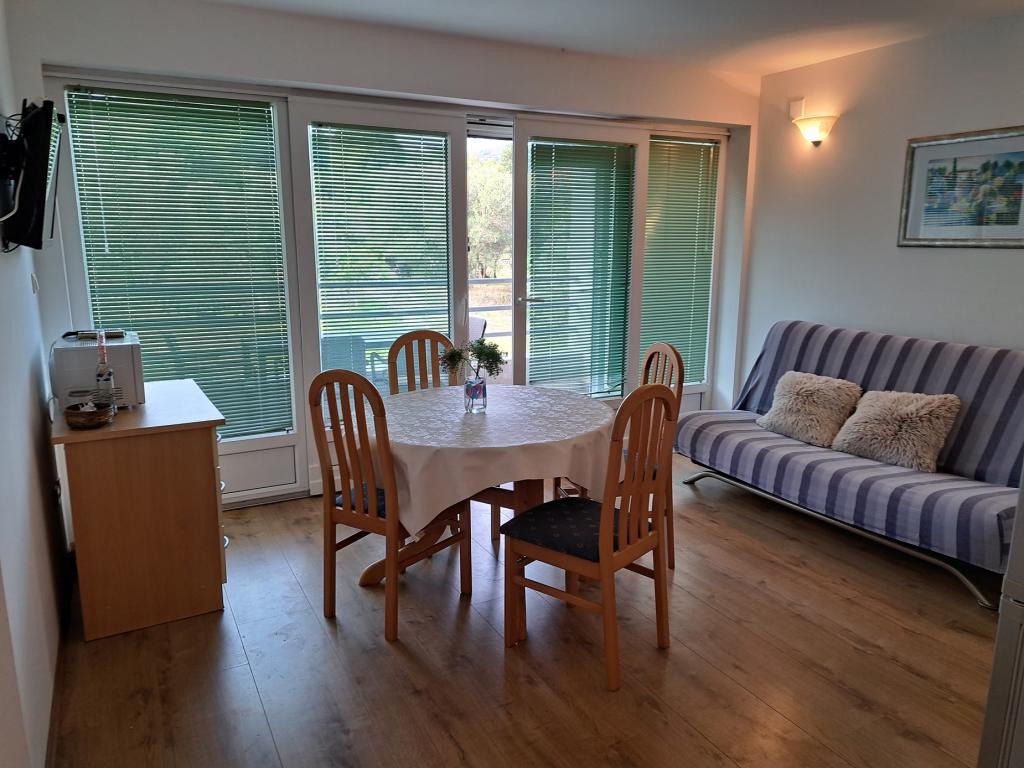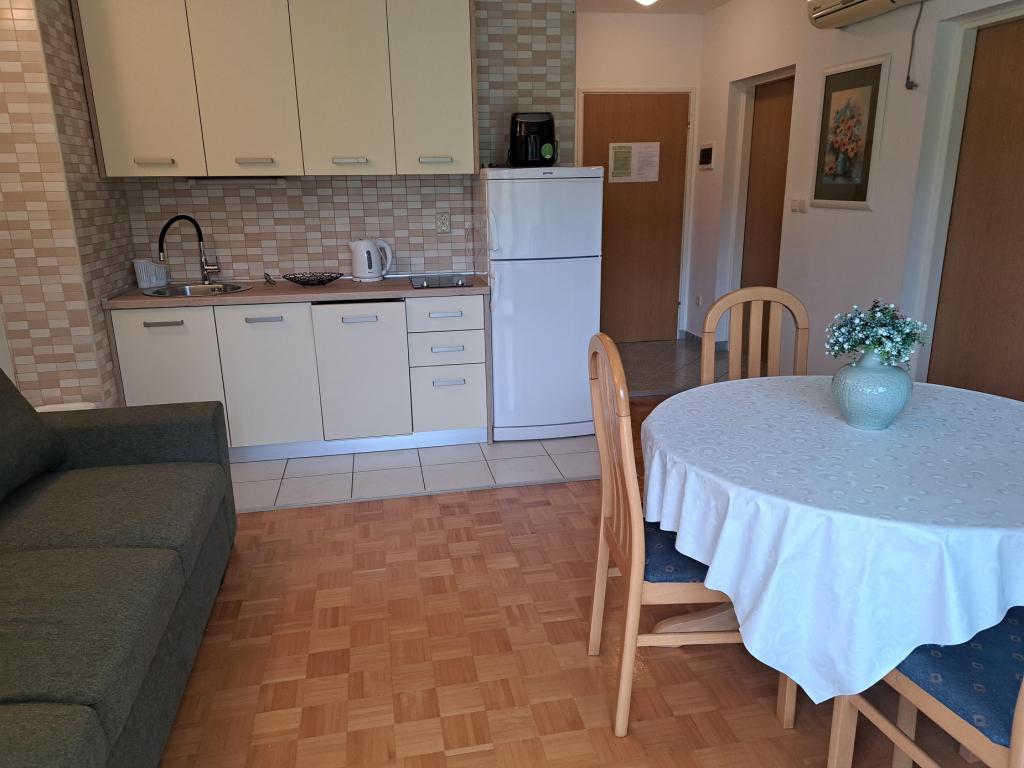 Apartamente complet utilate și modern într-un oraș mic, situat chiar lângă mare. Suntem ultima casă de la malul mării în micul sat Banj de pe insula Pašman. Suntem la aproximativ 200 m de centrul orașului (magazine, cafenele, restaurante și plaja locală), de-a lungul mării. Situat pe o proprietate spațioasă (aproximativ 1600 m2). Parcare securizată. În fața casei este o peluză amenajată cu un foișor. Foișorul are următoarele facilități: grătar, 2 plite electrice, frigider, chiuvetă, ustensile de gătit și de luat masa, masă și bănci pentru stat. Foișorul este gratuit pentru oaspeți, cu acordul gazdei. Totul este orientat spre mare. Proprietatea este conectată la o plajă bine întreținută (umbră, șezlonguri, bănci, duș). Potrivit în special pentru familiile cu copii mici și pentru oricine își dorește liniște și relaxare.