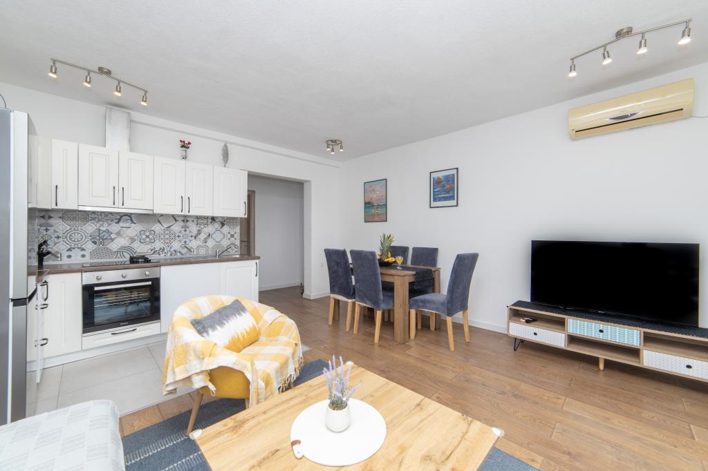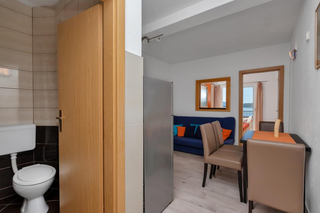 Locuim intr-un apartament 2+2, camere separate, bucatarie. Peste tot curat si utilaje in stare buna, fara mobilier vechi etc. Pretul este bun dupa parerea mea, fara nicio taxa suplimentara pentru aer conditionat, caine, etc.... Viata de noapte doar pe plaja, liniste deplina in jurul apartamentului, noi au fost surprinsi. Nu prea i-am văzut pe proprietari, doar predarea la început și apoi la sfârșit, am circulat mult, bucurându-ne. Plajele cu pietriș sunt avantajoase prin faptul că marea este cu adevărat limpede. Dacă ar trebui să mă întorc vreodată în zonă, știu unde să merg și nu cred că aș căuta în altă parte dacă ar fi disponibil. Deoarece nu există perfecțiunea, aș dori să fac o mică notă. Tigaia de pe aragazul cu inducție a fost puțin greu de încălzit, probabil că nu a fost construită direct pentru inducție, dar se putea face ceva în privința asta, a durat doar puțin timp, restul vaselor au fost în regulă.