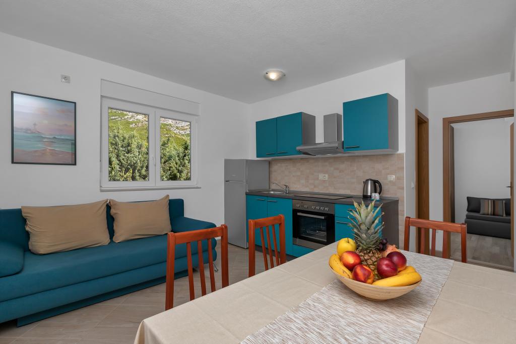 Apartamentele sunt situate pe Riviera Makarska, în micul sat Zivogosce Blato, care oferă o experiență unică a mediului natural. Complet echipate pentru a vă face șederea cât mai plăcută. Toate apartamentele au terase cu vedere la mare (insulă și peninsula Peljesac), aer condiționat și Wi-Fi, și sunt situate într-o înfundătură cu doar câteva minute de mers pe jos de plaja principală și de centrul orașului. Parcarea este prevăzută pentru toți oaspeții de lângă casă. Casa este, de asemenea, un spațiu comun pentru grătar și socializare. Apartamentele sunt călduros recomandate pentru o vacanță de familie, precum și din cauza locație excelentă naturală a satului și a conținutului bogat în mediul, suntem încrezători pentru a satisface oaspeții și aventuroasă. Vom da intimitate maximă timp ce în picioare la dispoziția dumneavoastră 24 de ore pe zi, la o utilizare maximă și mai confortabil vacanta cu noi. Ne place comunicarea relaxat și suntem bucuroși să vă informăm despre numeroasele oportunități oferite în locul și vecinătatea acesteia. Așteptăm cu nerăbdare să te văd!
