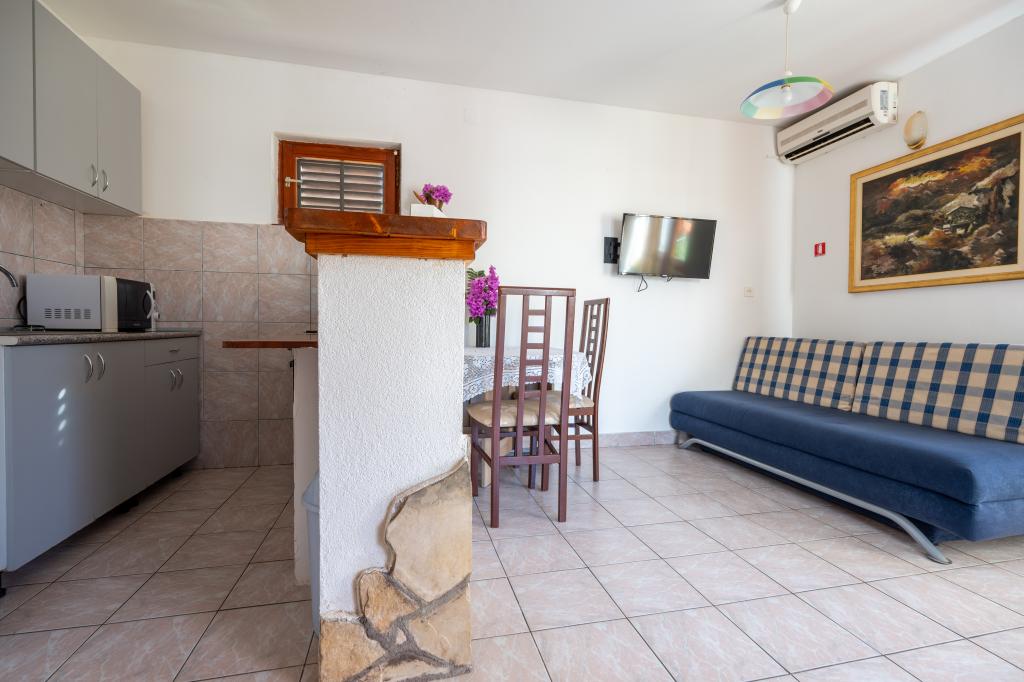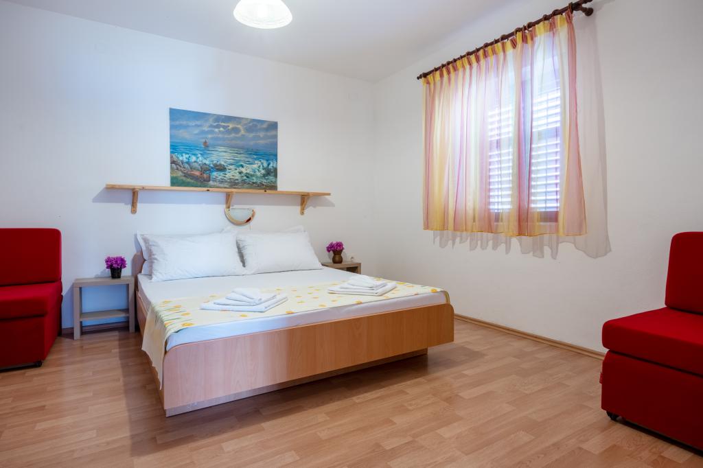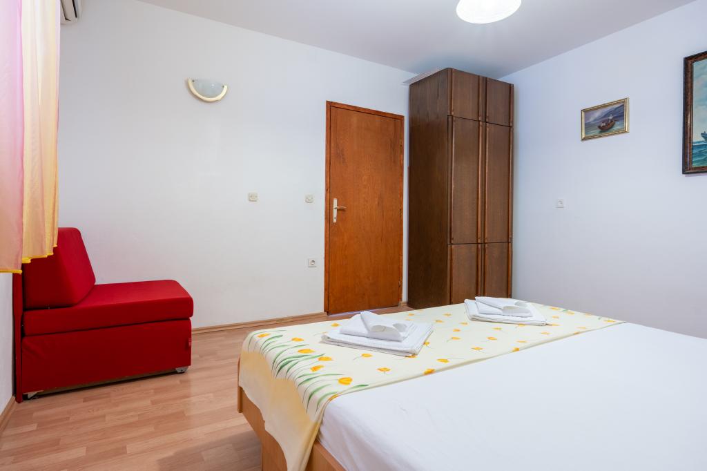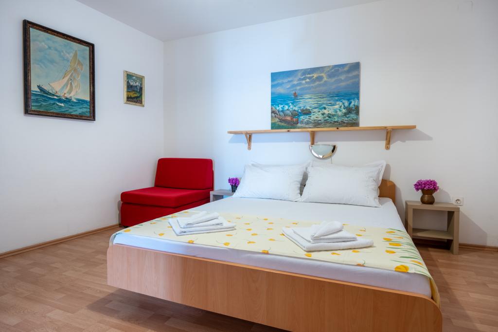 Taxa de rezidenta este inclusa in pret. Document de confirmare a rezervării la rezervareNamolul are mai multe plaje frumoase și golfuri izolate cu o mulțime de umbră naturală. Toate plajele, înconjurat de pini, cu intrare foarte treptată în mare, adecvate pentru copii. Marea este curată și limpede precum cristalul. Pentru vacanță mai activă se pot juca tenis sau fotbal, și sporturi de apă, închiria o barcă, jet ski, scuter... noapte pescarilor, cu muzică live, pește la grătar și multe de divertisment popular tradițional sunt organizate săptămânal. Cei care iubesc mersul pe jos sau drumeții vor găsi trasee marcate în pădurile din jur și pârtia de munte. Excursii la insulele din apropiere sunt organizate zilnic. Puteți merge, rafting pe râul Cetina sau foto safari prin delta râului Neretva, toate la o distanță de 50 km de proprietate.