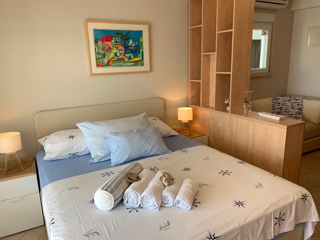 Oferim garsoniere moderne, situate chiar lângă mare, fiecare pe etajul său. Toate apartamentele au balcon cu vedere frumoasă la mare și la insulele din jur.