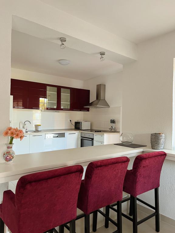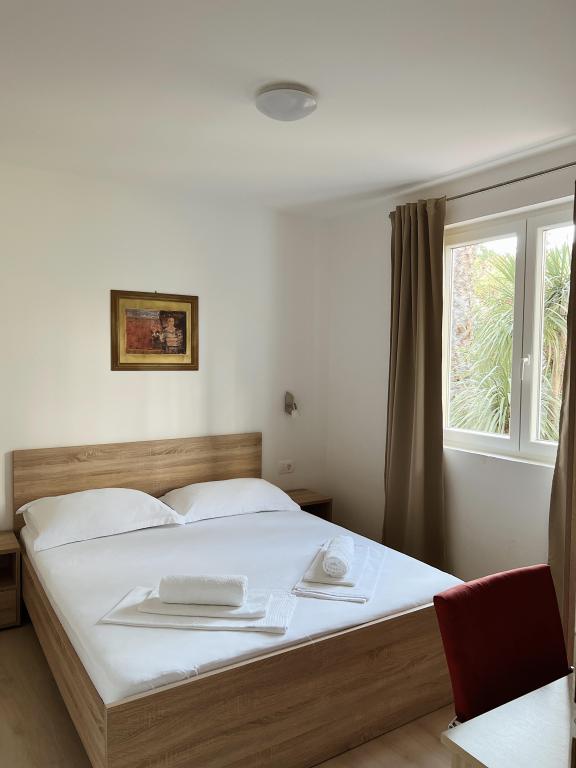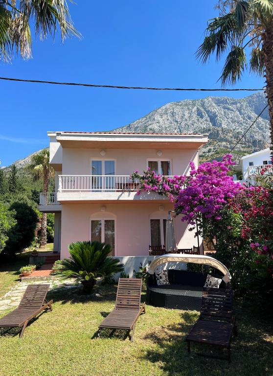 Această vilă frumoasă situată în primul rând la mare oferă combinația perfectă de liniște și relaxare, înconjurată de o grădină mare luxuriantă și de o vedere frumoasă la muntele Biokovo. Relaxați-vă pe terasa sau balcoanele spațioase, înconjurate de flori superbe de bougainvillea și palmieri înalți. Vila Ilaria este formata din doua apartamente confortabile si spatioase complet utilate, care va vor oferi o vacanta placuta. Apartamentul de la parter include o terasa si o curte in fata vilei cu posibilitatea de a folosi un gratar exterior din caramida, iar apartamentul de la etaj va ofera trei balcoane cu vedere la mare. Parcarea privată gratuită este disponibilă în curtea din spate. La cerere, oferim și închirierea întregii facilități pentru grupuri mai mari. La câteva minute de mers pe jos, puteți găsi restaurante și cafenele locale, o brutărie, un stand local de fructe și legume, magazine de suveniruri și o ofertă de diferite excursii.