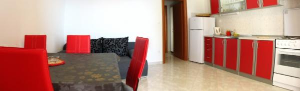 Avem șase apartamente. Toate apartamentele sunt dotate cu aer condiționat, bucătărie și baie proprie. Și toată lumea, desigur, au o vedere la mare. Apartamentele sunt spațioase și ambient placut. Pentru toți oaspeții noștri avem loc de parcare.