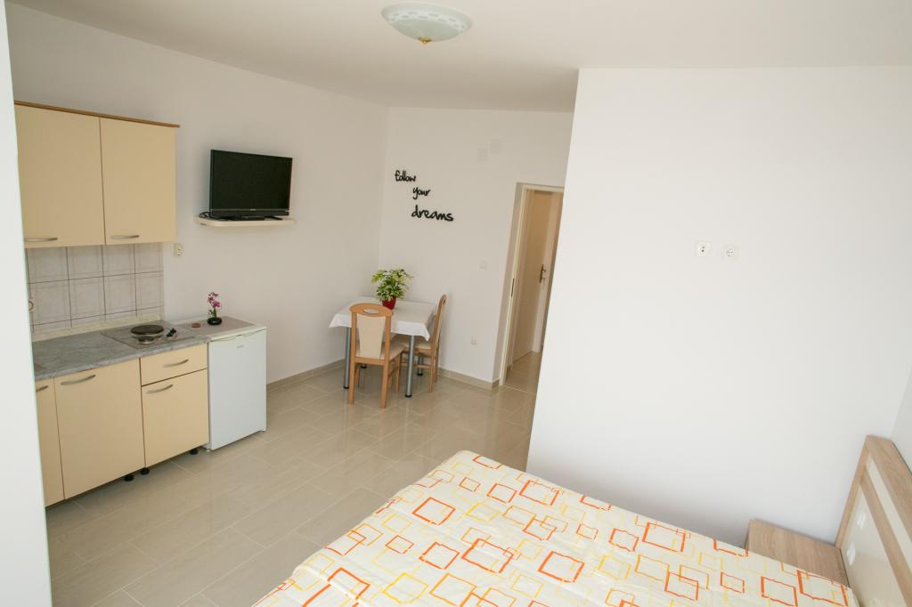 Apartamente echipate, situate n primul rnd la mare. Distan?a de plaja principal? este de aproximativ 10 minute de mers pe jos, unde exist? un bar pe plaj?. Plaja poate fi accesat? pe jos sau la 3 minute cu ma?ina, unde se ofer? parcare gratuit?.