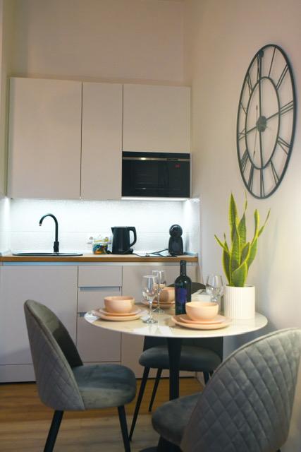 Apartamentul studio Mia oferă oaspeților intimitate și o ședere plăcută. Pretul include o bautura de bun venit, cafea, ceai, capsule Dolce gusto, produse cosmetice.