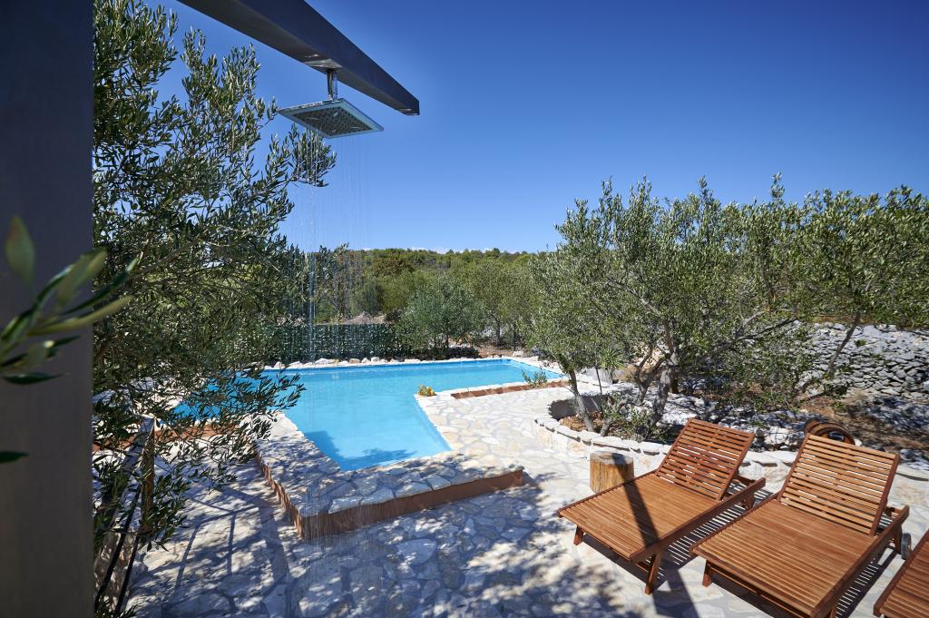 La sosirea in locatie am fost intampinati de o gazda foarte cordiala, casa in sine este decorata intr-o maniera rustica, ingrijita si curata, gazda ne-a pregatit un frigider plin cu bauturi reci, ceea ce a fost foarte important pentru noi dupa excursie. Curtea este înconjurată de măslini și verdeață, piscina este curată, iar zona înconjurătoare este îngrijită. Pe parcursul sejurului, gazda a întreținut în mod regulat piscina și zona înconjurătoare, a fost mereu la dispoziția dumneavoastră și extrem de prietenoasă. Locatia este foarte linistita, pana la prima plaja sunt 110 pasi, am numarat noi, iar plajele invecinate sunt la 5-10 minute de mers pe jos. Centrul orașului este la 5 minute de mers cu mașina cu toate facilitățile necesare, magazine, farmacii, facilități de divertisment etc. Un loc de vacanta foarte relaxant, vom reveni cu siguranta, iar toate recomandarile pentru cei care nu au vizitat, nu veti regreta.