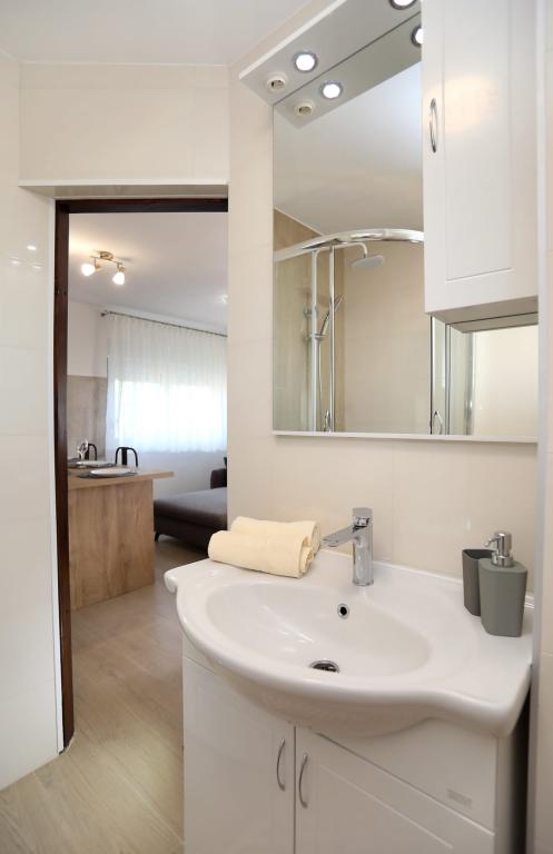 Apartamentul este intr-o locatie excelenta la mare. Plaja este parțial stâncoasă, parțial pietrișă, apa este extrem de curată. Terasa cu scaune este spațioasă, cu o vedere frumoasă la mare. Apartamentul are utilaje noi si este impecabil de curat. Bucătăria este bine dotată cu un cuptor și un frigider cu un congelator. Posibilitatea de a folosi gratarul in gradina. Gazdele Sonja și Ante sunt extrem de primitoare, prietenoase și ne-au oferit toate informațiile necesare. Îl recomand cu căldură tuturor celor care caută liniște și natură nealterată.