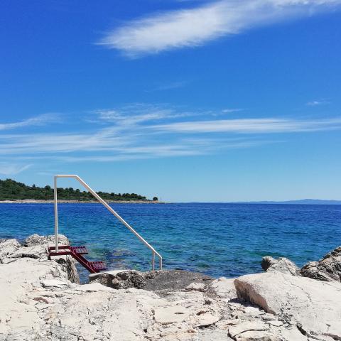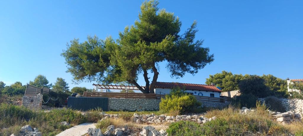 Drvenik Mali este o insulă situată la aproximativ 8 mile marine de orașul Trogir, de care este conectată printr-o linie de feribot (călătoria durează aproximativ 1 oră și sunt trei, adică patru linii zilnice). Este un sat tipic pescaresc, departe de stilul de viață aglomerat și stresant și, ca atare, este ideal pentru a vă bucura de natura unică și de marea limpede. Facilitatea este situată pe partea de sud a insulei și are o vedere frumoasă la mare deschisă și este la 20 m de mare. o casa cu bucatarie, dormitor si toaleta (exista si un dus exterior care foloseste apa incalzita de soare), si o cladire la demisol cu dormitor. Folosește electricitate din sistemul solar, iar apa este apă de ploaie. Bucataria este dotata cu aragaz si frigider cu congelator. În plus, are TV și acces la internet. In imediata apropiere se afla golful Vela Rina cu o minunata plaja de nisip.