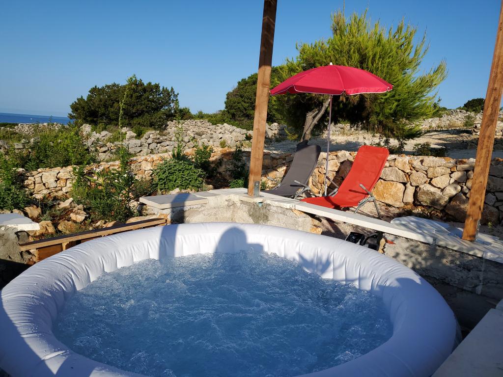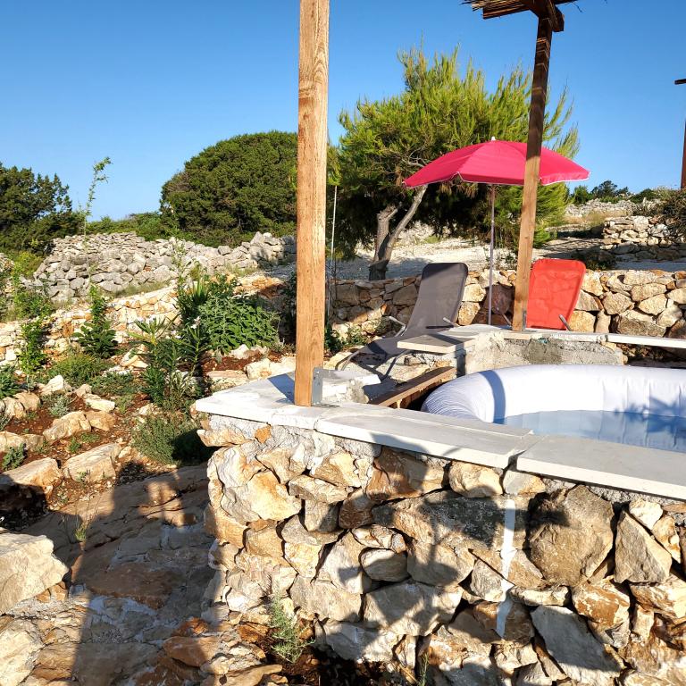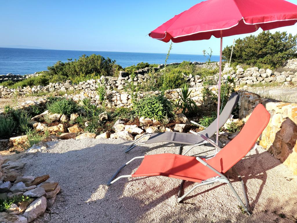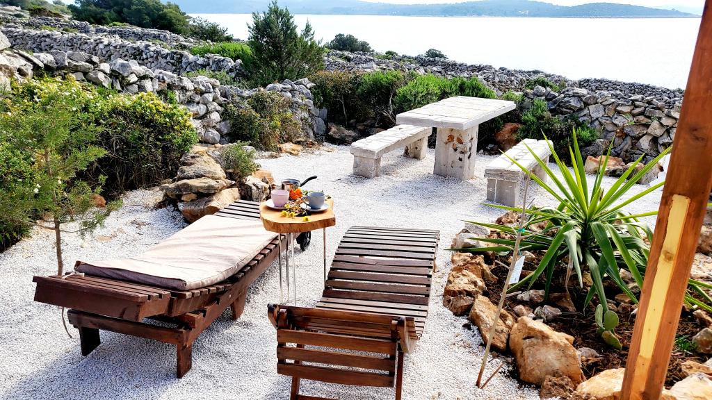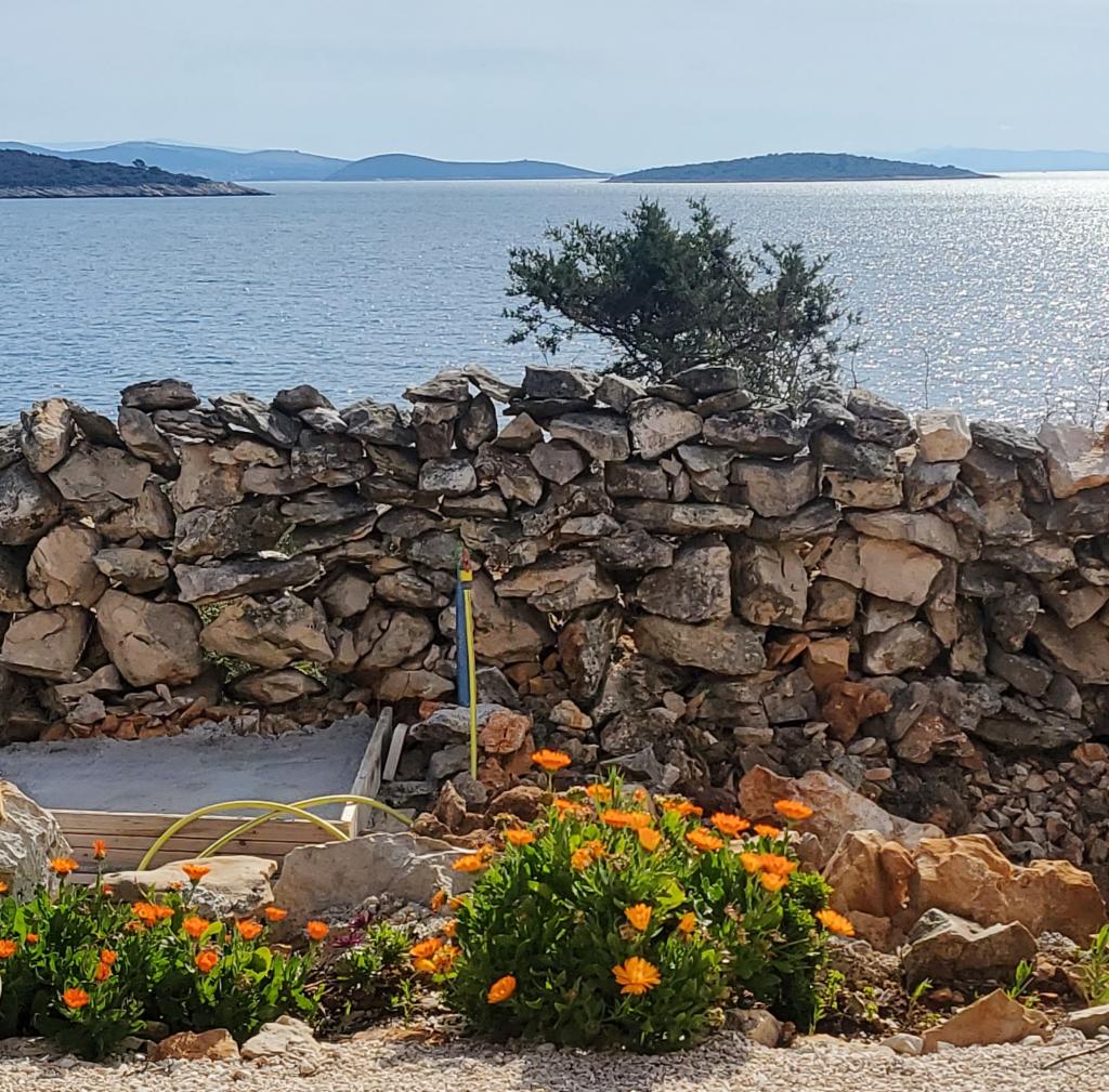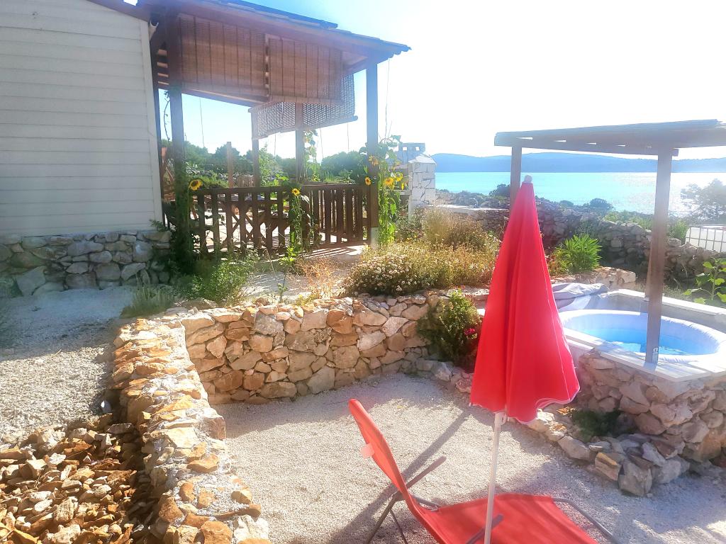 Puteți găsi mare și soare oriunde pe Marea Adriatică, dar dacă doriți cu adevărat să vă relaxați fără zgomotul orașului și al trecătorilor, cu cele mai frumoase răsărituri și apusuri de soare, atunci această insulă de lângă Trogir este ideală pentru dvs. Casa de vacanță, care este alimentată cu energie solară, este situată la doar 30 de metri de mare și, pe lângă mare, are vedere și la stânci naturale formate de jocul milenar al valurilor. Aceasta, acum renovată și cândva o casă mobilă, este destinată tuturor celor care iubesc frumusețea naturală, multă verdeață parfumată și caută puțină liniște, iar dacă aveți nevoie, Wi-Fi-ul este inclus și în ofertă. De asemenea, vă puteți aduce animalul de companie în vacanță, iar pentru cei cărora le place să facă grătar, există un șemineu mare în aer liber la dispoziția lor. Casa este climatizată și este formată dintr-o bucătărie complet utilată, două dormitoare și o baie. În fața casei se află o terasă acoperită cu masă, scaune, șezlonguri și un duș exterior. Prin urmare, dacă doriți să veniți într-un loc unde timpul trece încet și dacă sunteți dornici de natură neatinsă - veniți la noi.