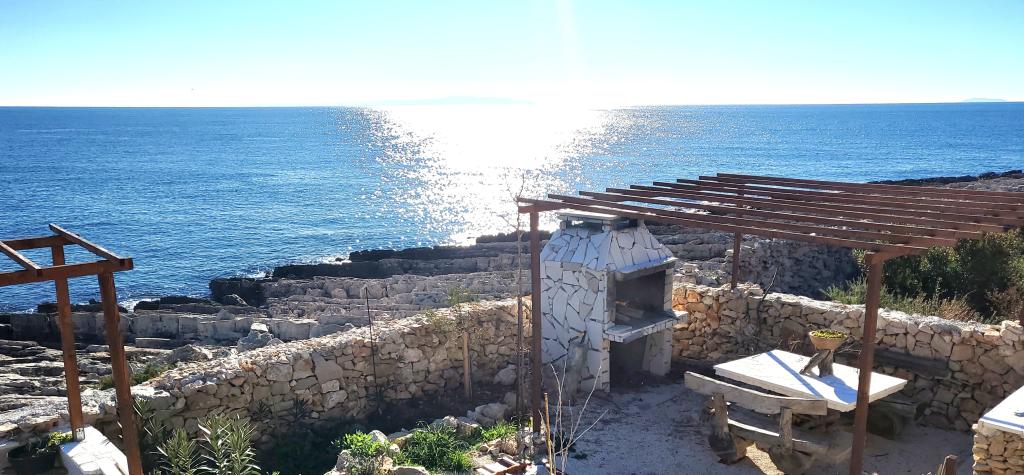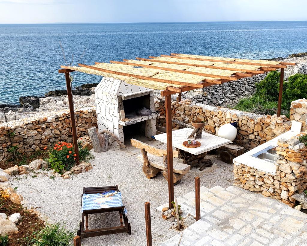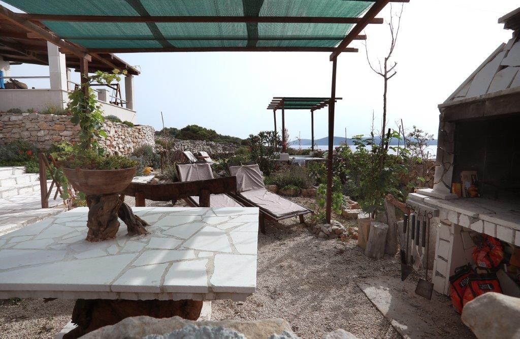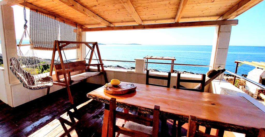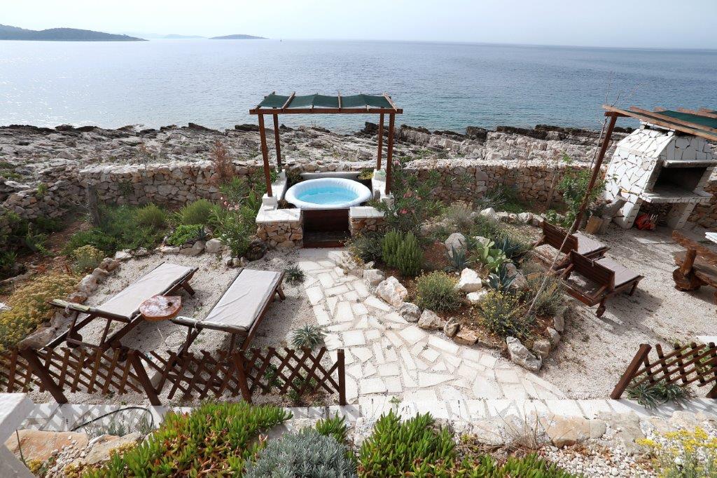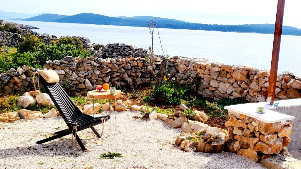 Marea și soarele pot fi găsite oriunde pe Marea Adriatică, dar dacă doriți cu adevărat să vă relaxați fără zgomotul orașului și al trecătorilor, cu cele mai frumoase răsărituri și apusuri de soare, atunci această insulă de lângă Trogir este ideală pentru dumneavoastră. O casă de vacanță magică, chiar lângă mare, alimentată cu energie solară, pe lângă mare, are vedere la stâncile naturale formate de jocul milenar al valurilor și la insulele Drvenik Veli, Hvar și Vis. Această casă mică, de poveste, este destinată tuturor celor care iubesc frumusețea naturală, multă verdeață parfumată și este formată dintr-o bucătărie cu sufragerie și living, o baie și două dormitoare. Primul etaj este o mansardă joasă - o cameră, o toaletă și un balcon, iar în fața casei se află o terasă cu șezlonguri de unde vă puteți bucura de o priveliște frumoasă asupra mării. Cei cărora le place să facă grătar au la dispoziție un șemineu mare în aer liber cu masă și bănci, și există și un duș exterior. Prin urmare, dacă doriți să veniți într-un loc unde timpul trece încet și dacă sunteți în căutarea liniștii, a mării albastre și a naturii neatinse, veniți la noi. :)
