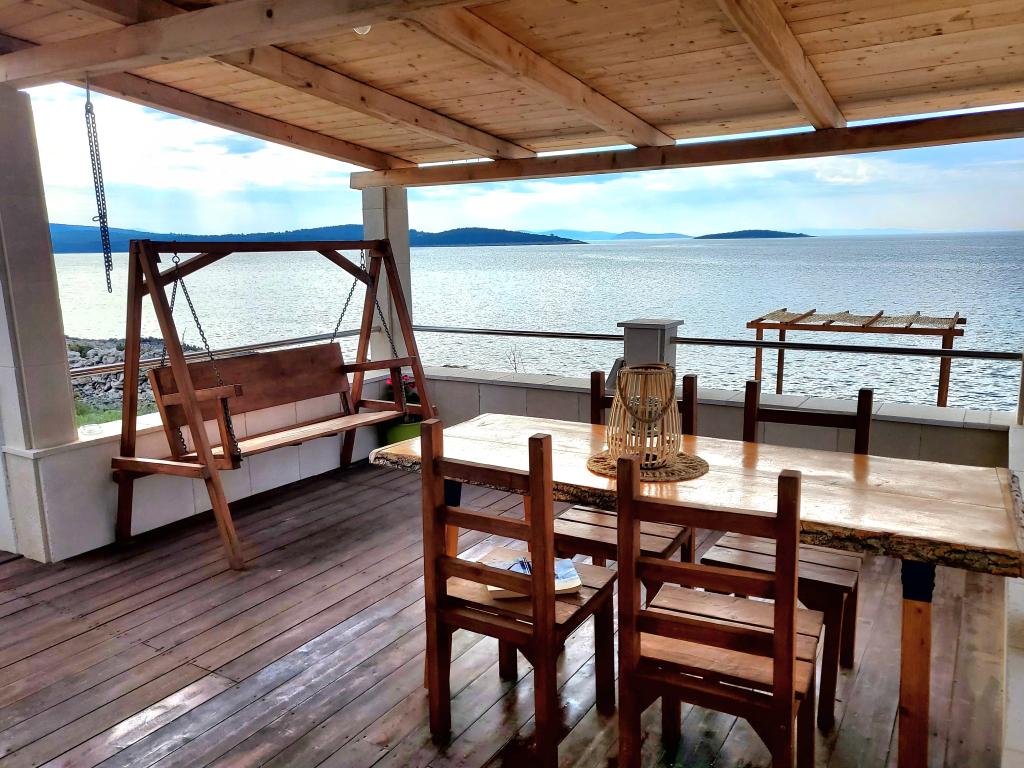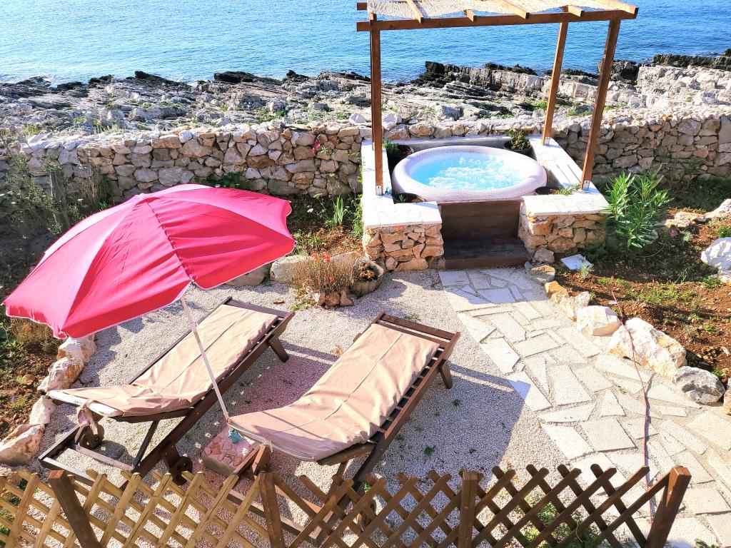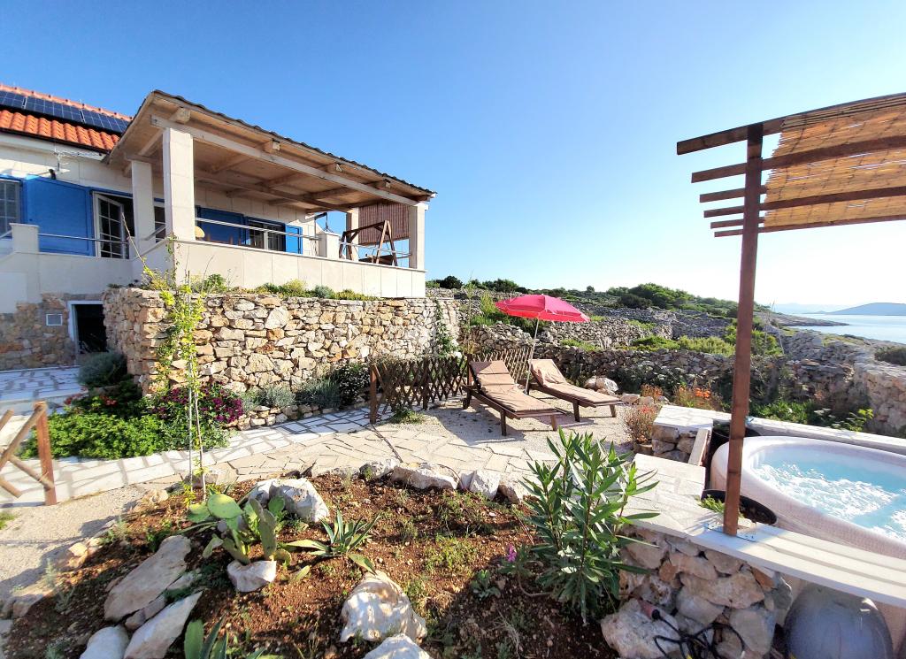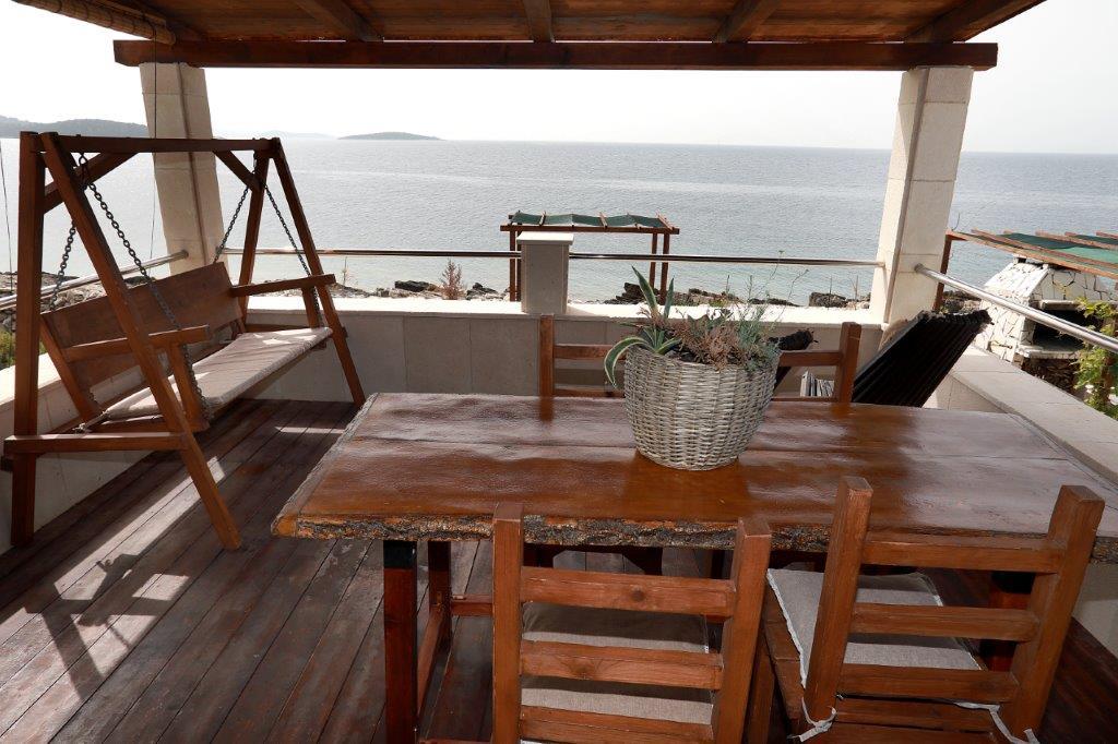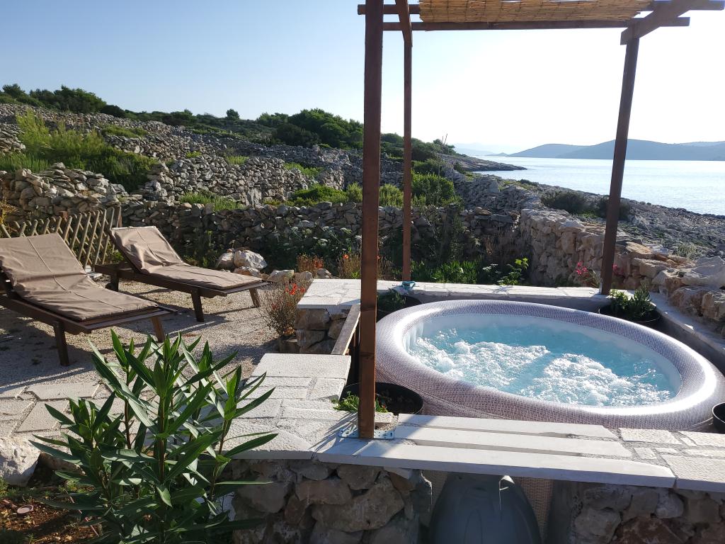 Marea și soarele pot fi găsite oriunde pe Marea Adriatică, dar dacă doriți cu adevărat să vă relaxați fără zgomotul orașului și al trecătorilor, cu cele mai frumoase răsărituri și apusuri de soare, atunci această insulă de lângă Trogir este ideală pentru dumneavoastră. O casă de vacanță magică, chiar lângă mare, alimentată cu energie solară, pe lângă mare, are vedere la stâncile naturale formate de jocul milenar al valurilor și la insulele Drvenik Veli, Hvar și Vis. Această casă mică, de poveste, este destinată tuturor celor care iubesc frumusețea naturală, multă verdeață parfumată și este formată dintr-o bucătărie cu sufragerie și living, o baie și două dormitoare. Primul etaj este o mansardă joasă - o cameră, o toaletă și un balcon, iar în fața casei se află o terasă cu șezlonguri de unde vă puteți bucura de o priveliște frumoasă asupra mării. Cei cărora le place să facă grătar au la dispoziție un șemineu mare în aer liber cu masă și bănci, și există și un duș exterior. Prin urmare, dacă doriți să veniți într-un loc unde timpul trece încet și dacă sunteți în căutarea liniștii, a mării albastre și a naturii neatinse, veniți la noi. :)