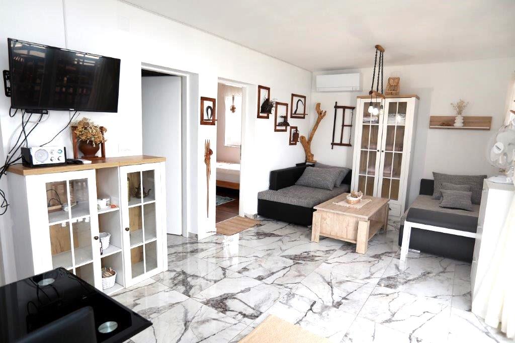 Am petrecut 10 zile de neuitat la mare cu familia. Am jucat multe cărți, ne-am jucat, ne-am scăldat... ne-am bucurat de liniște, liniște și priveliști minunate. Primirea a fost grozavă, proprietarii au fost super prietenoși, chiar ne-au pregătit prânzul. Apartamentul a fost curat și chiar mai frumos decât ne așteptam. Ai tot ce ai nevoie pentru o vacanta minunata, dar nu uita sa aduci tot ce ai nevoie de la mancare, bautura si necesitate. Nu am avut nicio problemă cu asta pentru că eram pregătiți pentru asta. În rest, există o legătură excelentă cu feribotul spre Trogir, unde poți merge la magazin, piață sau la medic. Recomand cu siguranță vizitarea orașului.