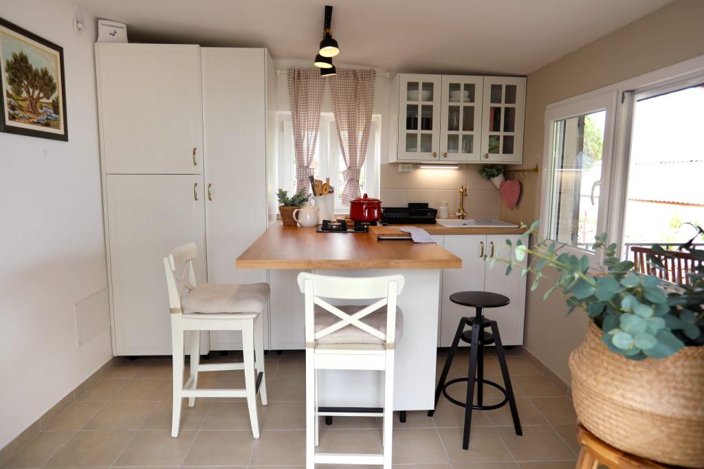 Ce sa spun despre acest gen de cazare si acest gen de gazde... Casa este perfecta, ideala pentru cei care doresc liniste si liniste, fara zgomot turistic si aglomeratie. Bucătăria este dotată cu tot ce este necesar pentru gătit, de la mâncăruri la condimente. Totul este îngrijit și impecabil de curat. Există suficientă apă și electricitate dacă sunt folosite rațional. Marea este la doar 10 pași de casă și este limpede. Iar terasa este superbă, cu o priveliște care îți taie respirația. Gazdele sunt oameni veseli, veseli care, la sosire, ne-au pregatit un pranz excelent. Snjezana și Siniša, vă mulțumesc din suflet! Vom reveni cu siguranță. Aceasta a fost cea mai bună vacanță a noastră de până acum!