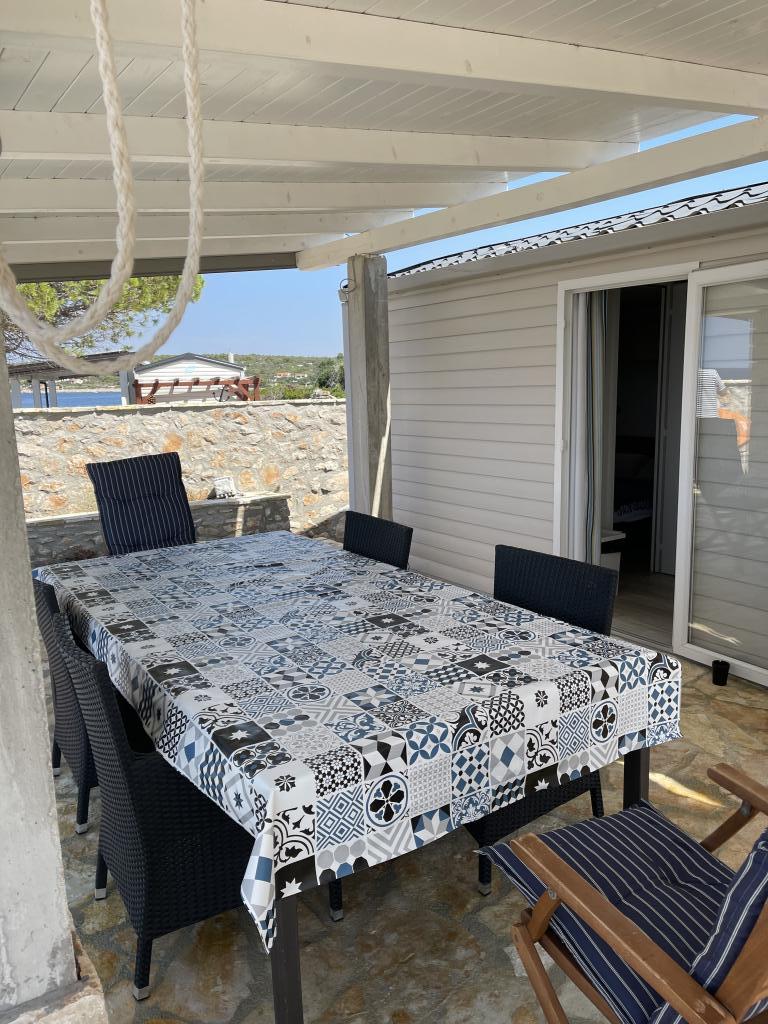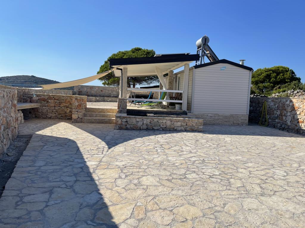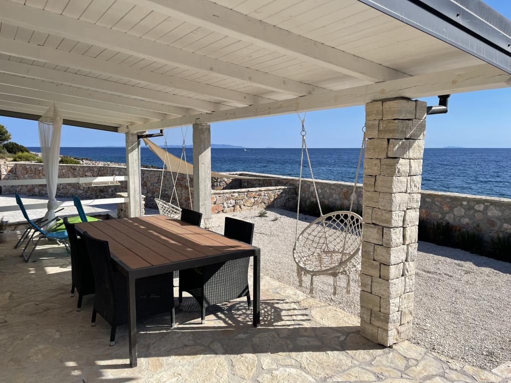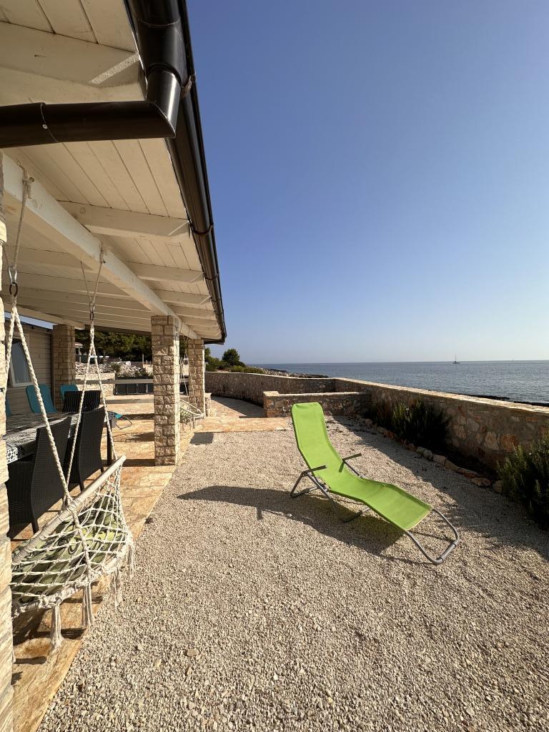 Casa mobila utilata modern cu toate facilitatile necesare, la doar 10 metri de mare. Perfect pentru a vă bucura de liniște și de priveliștea mării. Apusurile de poveste de pe terasa spațioasă de lângă mare sunt o adevărată oază de liniște. Casa este formată din două dormitoare duble, o bucătărie cu o sufragerie și o canapea extensibilă și o baie spațioasă, complet utilată. Casa este dotata cu panouri solare, aer conditionat, cuptor cu microunde, frigider cu congelator, dus exterior si interior, gratar pe gaz. Apă curgătoare din cisternă. Apa și electricitatea trebuie folosite cu moderație. Accesul in casa este posibil cu masina si dispune de parcare privata gratuita. O grădină spațioasă de 200 m2 cu acces propriu la mare. La 500m de casa se afla o plaja unica de nisip Vela Rina unde se afla un bar pe plaja si o taverna.